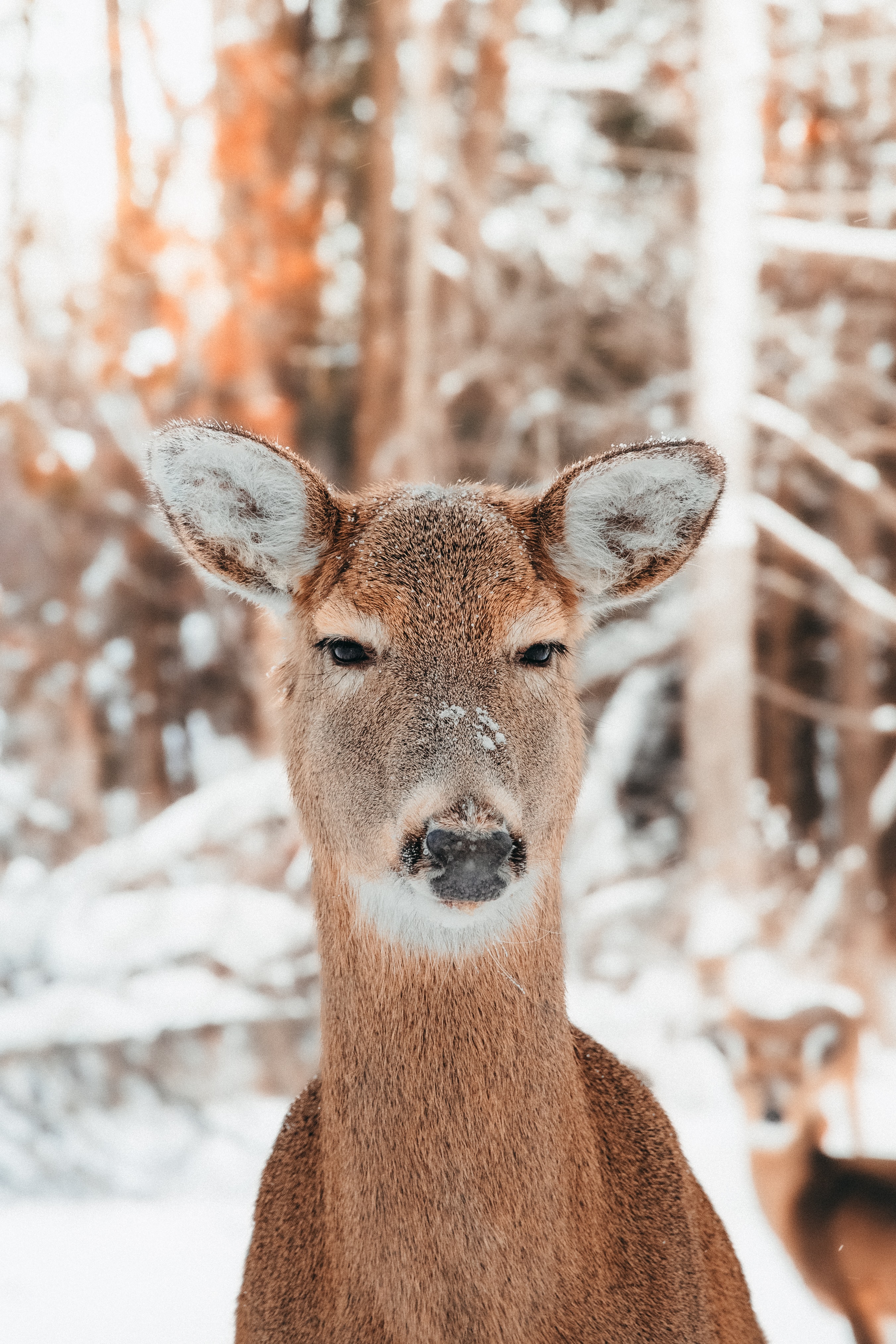 Wallpaper: deer in nature, mammal, winter - 2704x4056