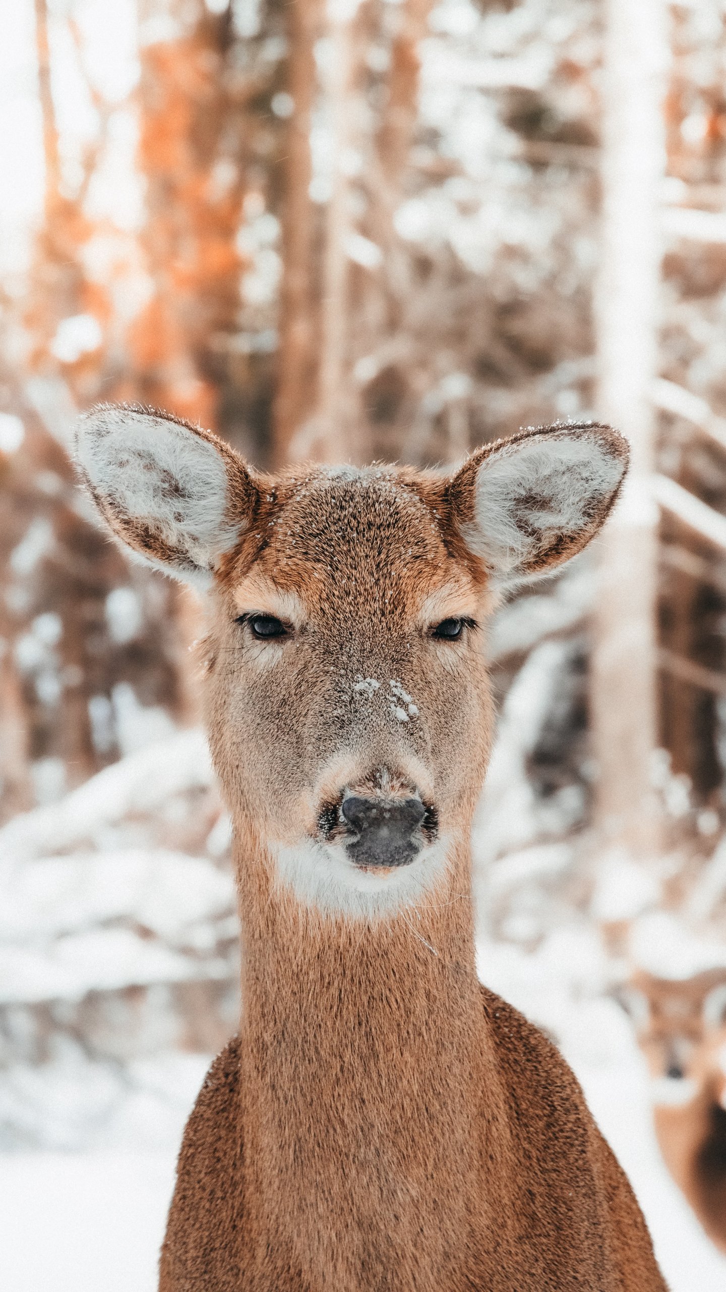 Wallpaper: deer in nature, mammal, winter - 1440x2560