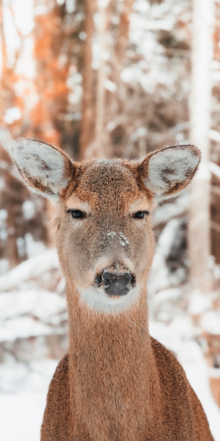 Wallpaper: deer in nature, mammal, winter - 720x1440