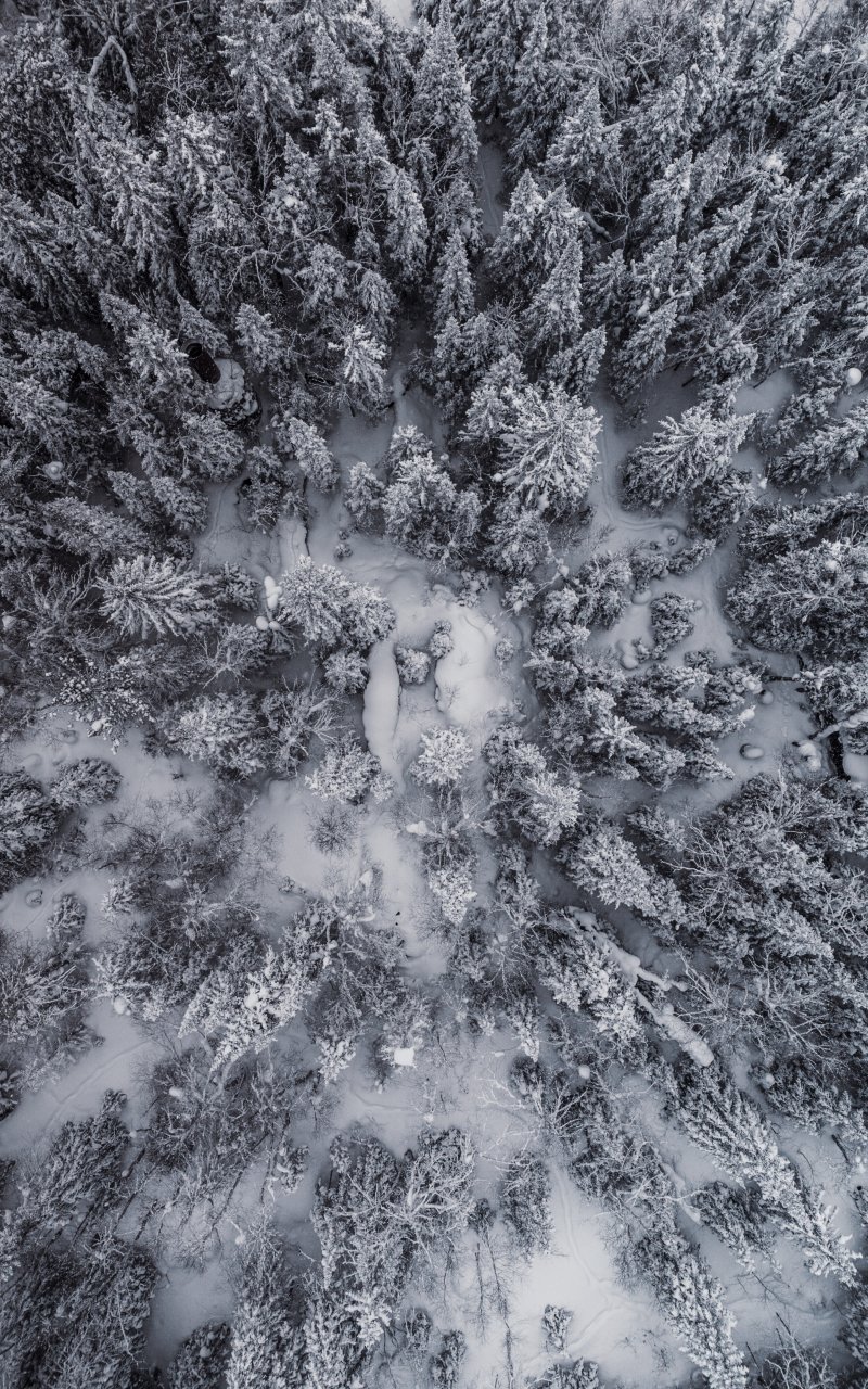 Wallpaper: snowfall, drone photo, winter, trees - 800x1280
