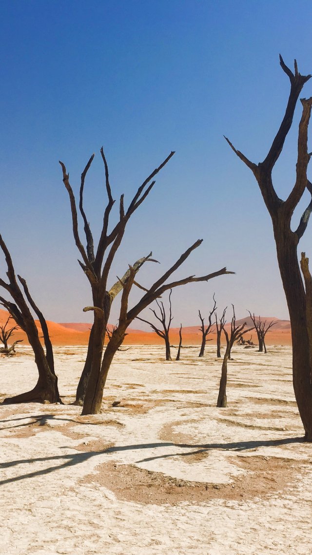 Wallpaper: Sossusvlei, Namibia, dead trees - 640x1136