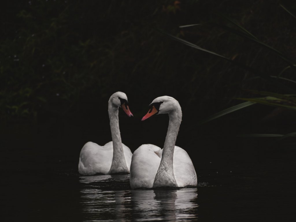 Wallpaper: Northumberland, Great Britain, lake, swans - 1024x768