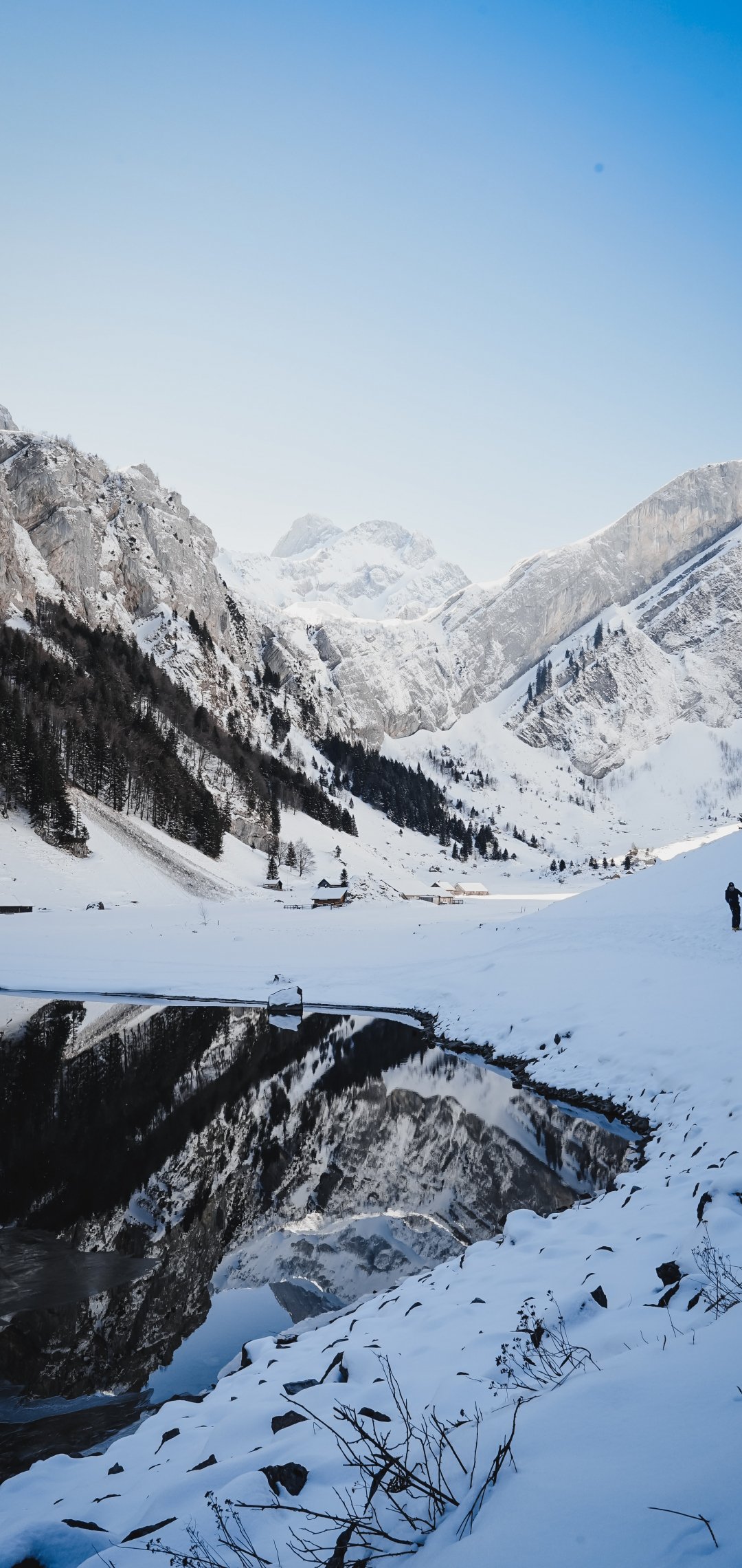 Wallpaper: Seealpsee, Schwende, Switzerland, mountains, skis - 1080x2280