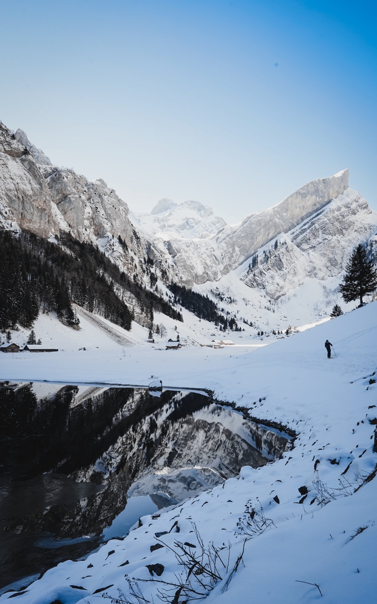 Wallpaper: Seealpsee, Schwende, Switzerland, mountains, skis - 1200x1920