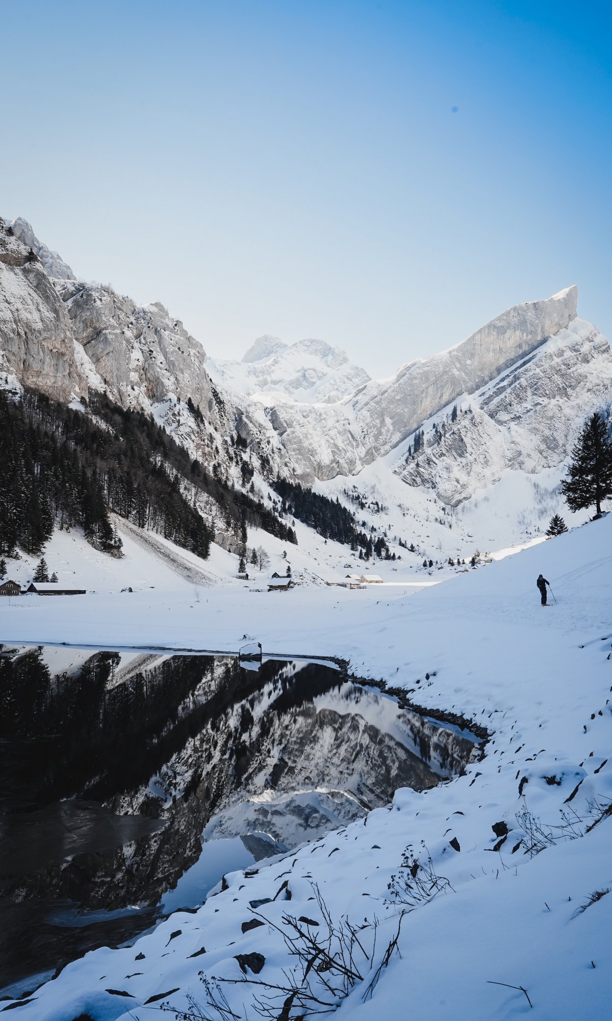 Wallpaper: Seealpsee, Schwende, Switzerland, mountains, skis - 1200x2000