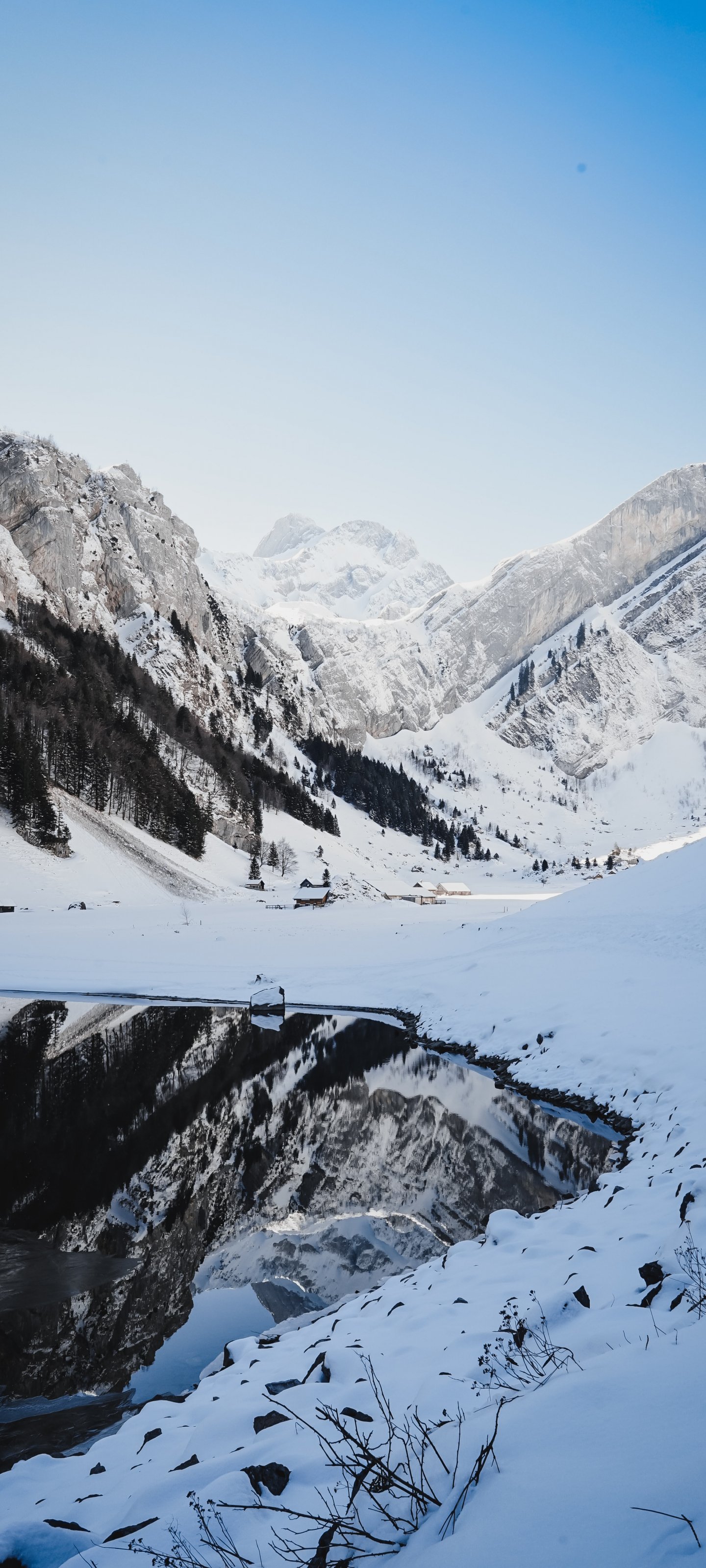Wallpaper: Seealpsee, Schwende, Switzerland, mountains, skis - 1440x3200