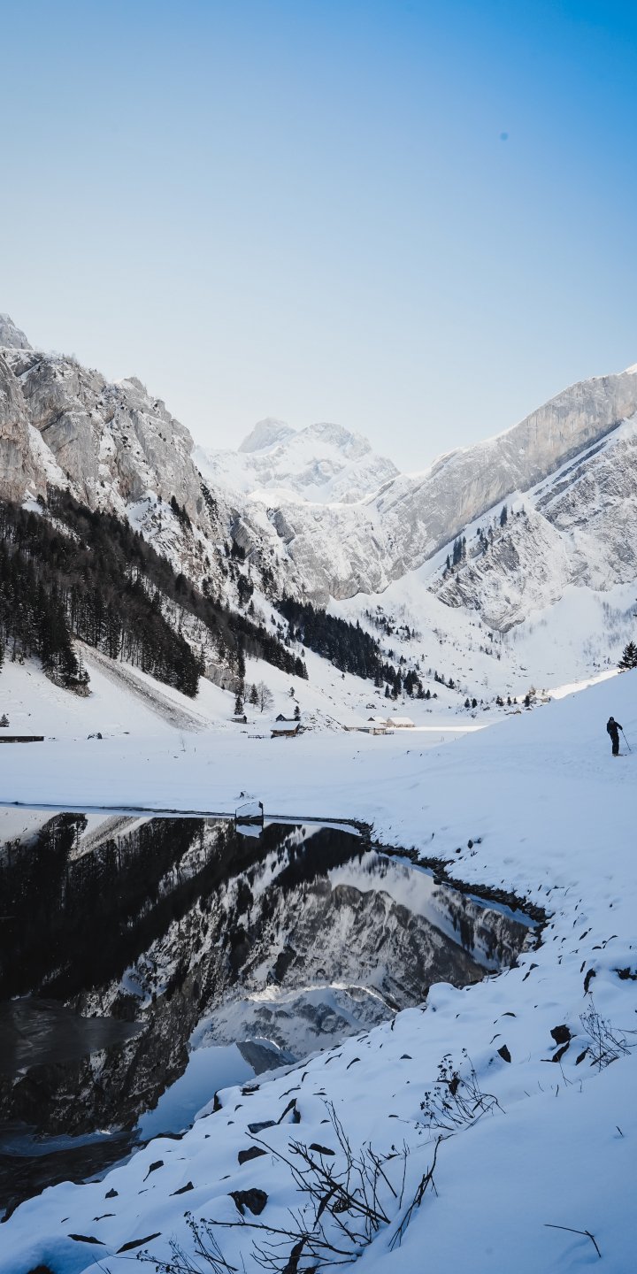 Wallpaper: Seealpsee, Schwende, Switzerland, mountains, skis - 720x1440