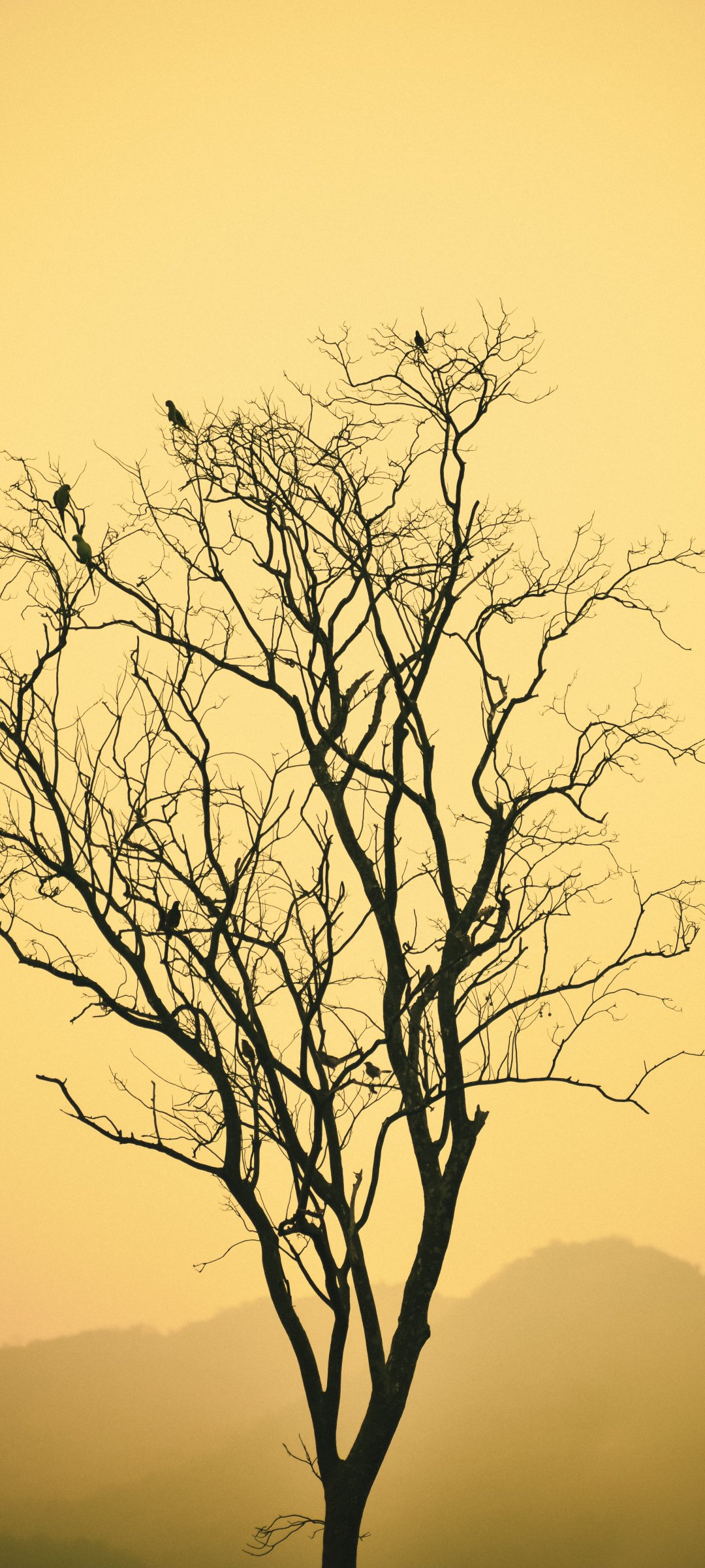 Wallpaper: flying birds, evening sunset, mountains - 1080x2400