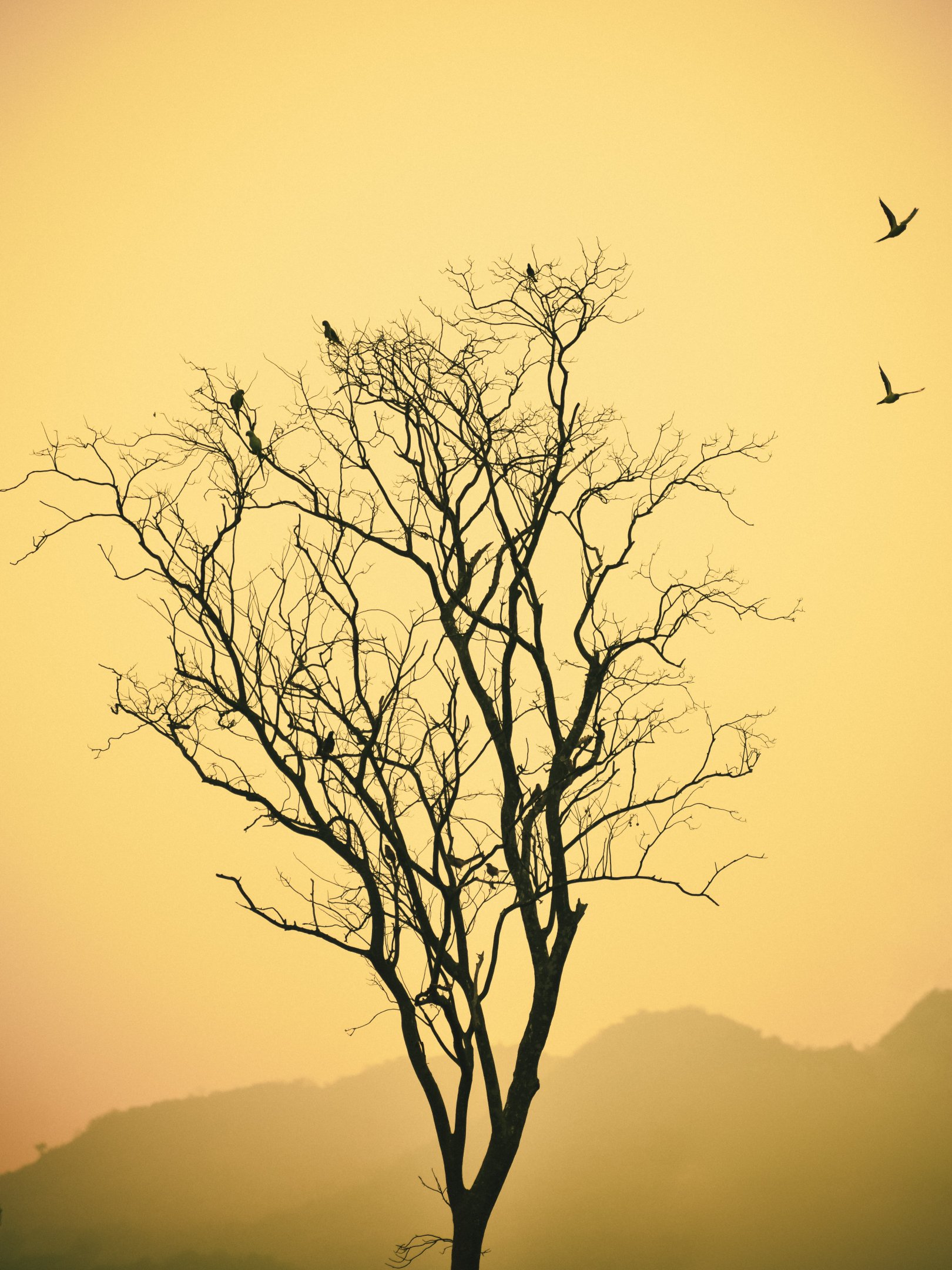 Wallpaper: flying birds, evening sunset, mountains - 1620x2160