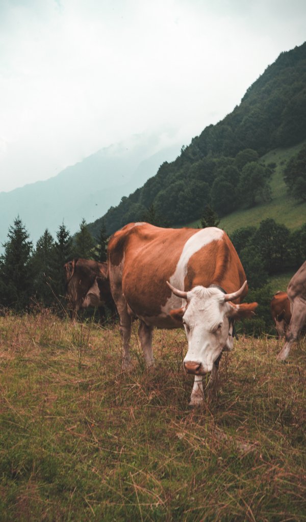 Wallpaper: cow, mammals, pasture - 600x1024