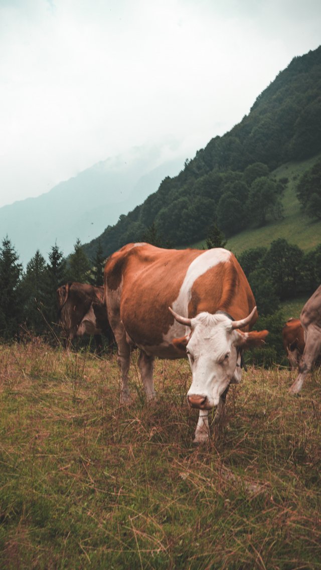 Wallpaper: cow, mammals, pasture - 640x1136