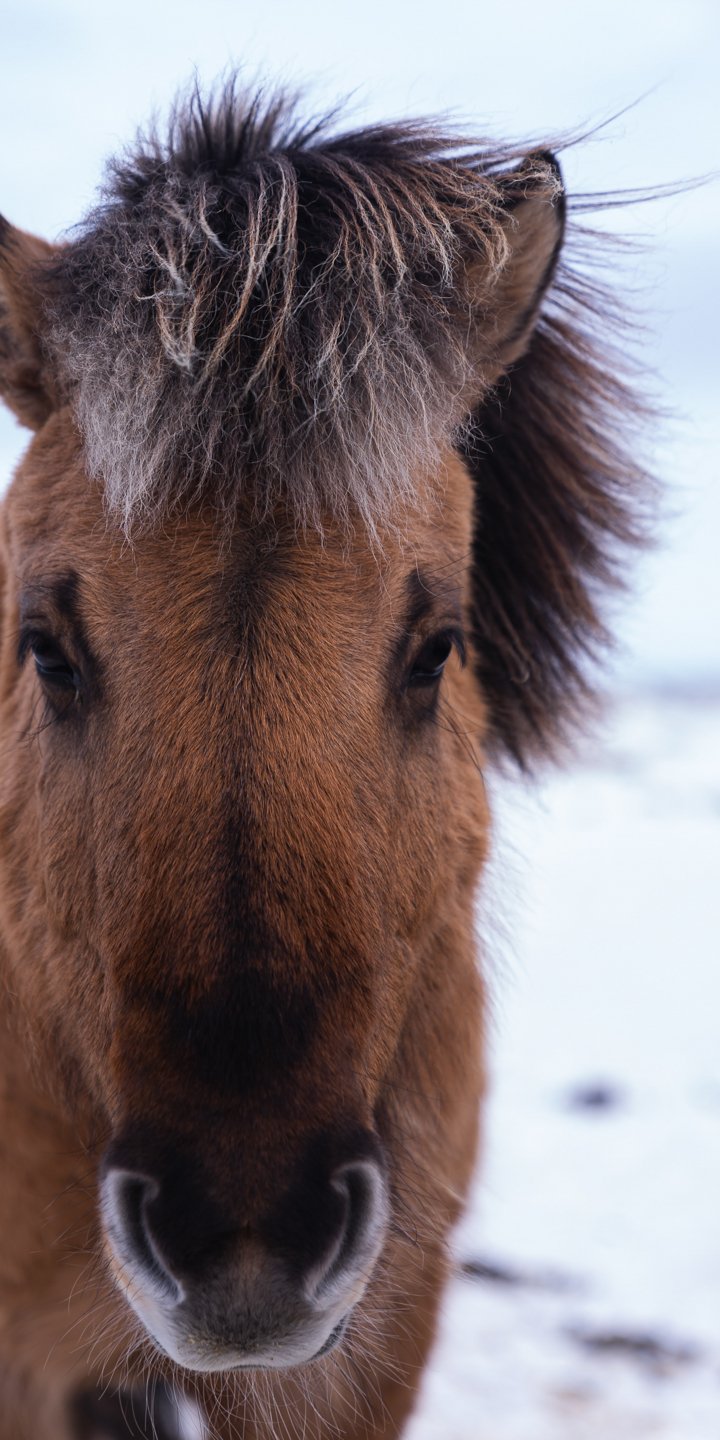 Wallpaper: Vic-i-Mirdal, Vic-i-Mirdal, Iceland, winter, horse - 720x1440