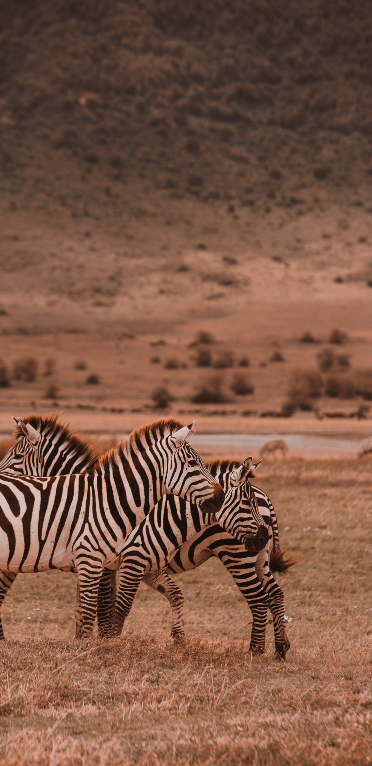 Wallpaper: Ngorongoro Game Reserve, Tanzania, zebras, mammals - 1440x2960