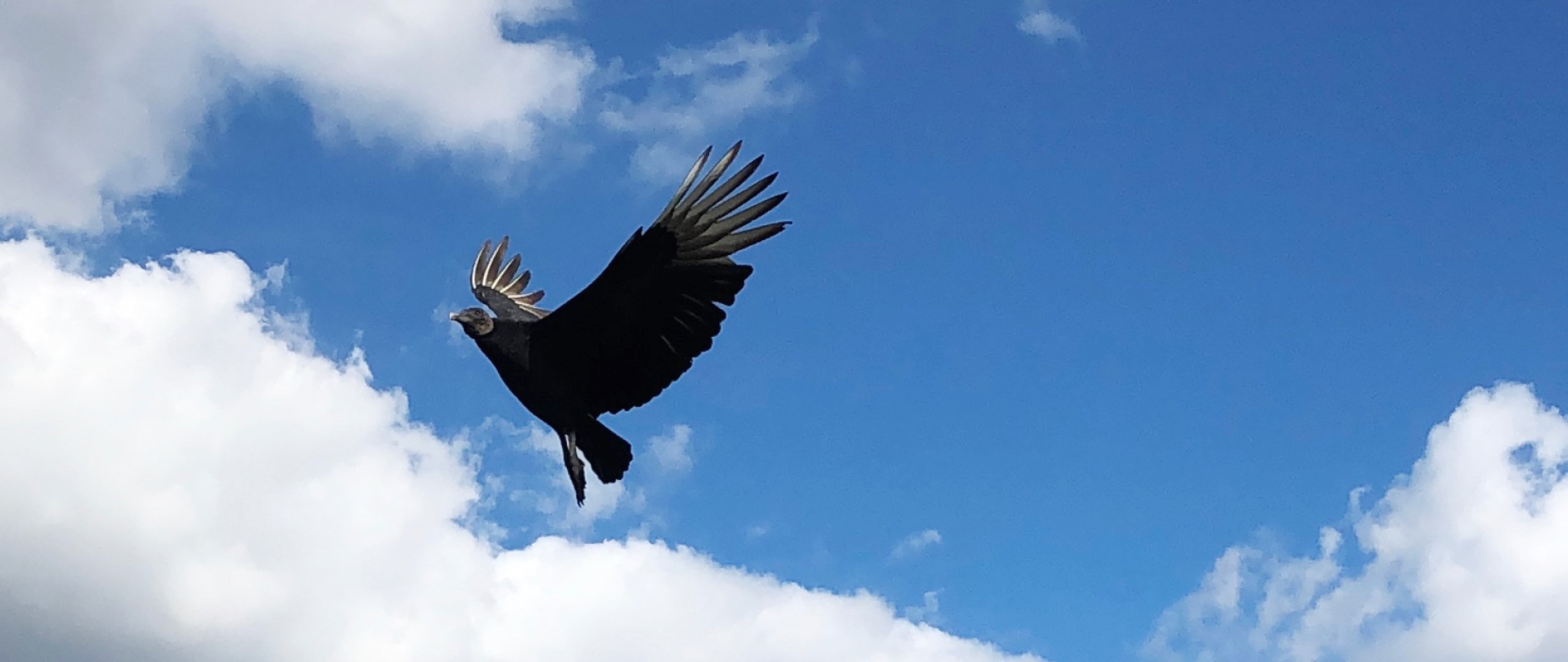 Wallpaper: black vulture, bird, flies - 2560x1080