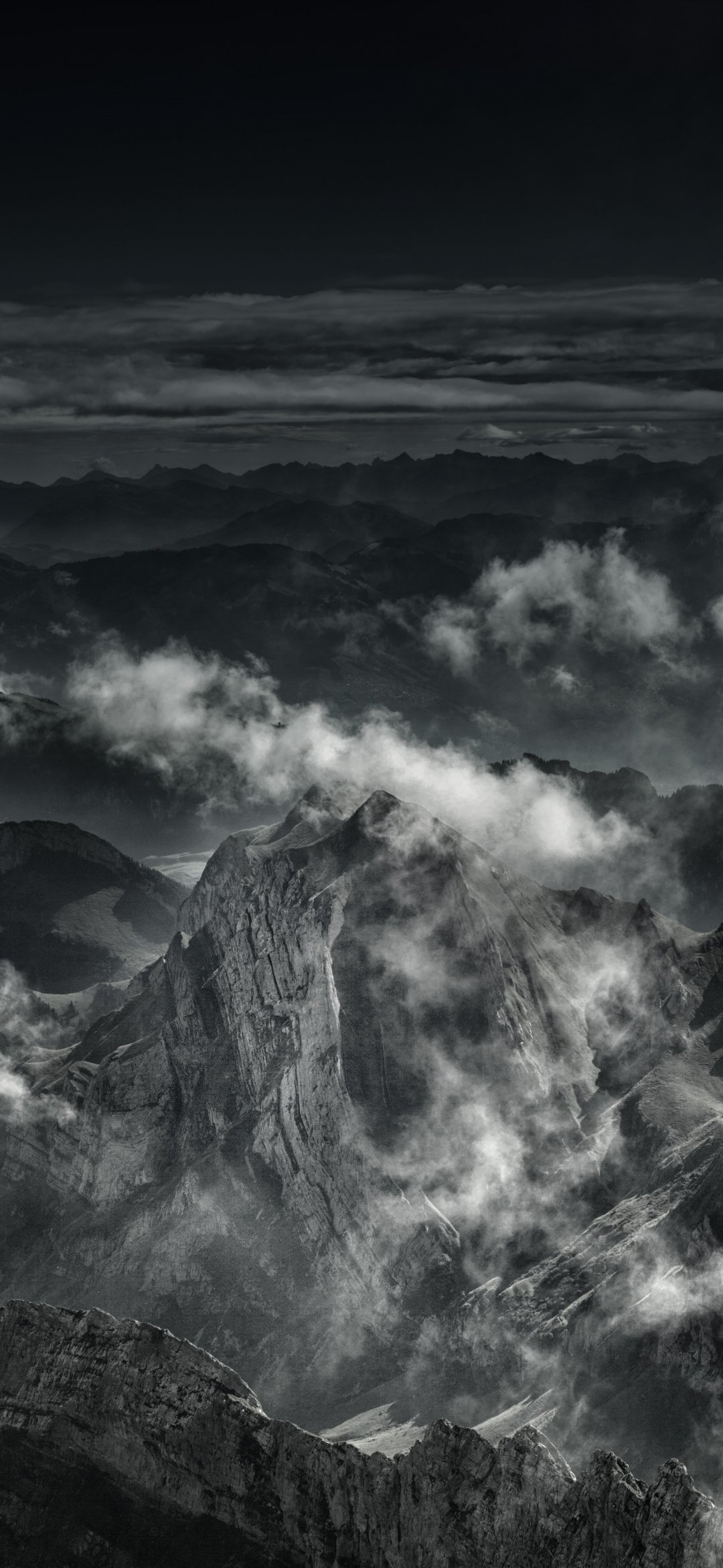 Wallpaper: mountain, black and white - 1080x2340