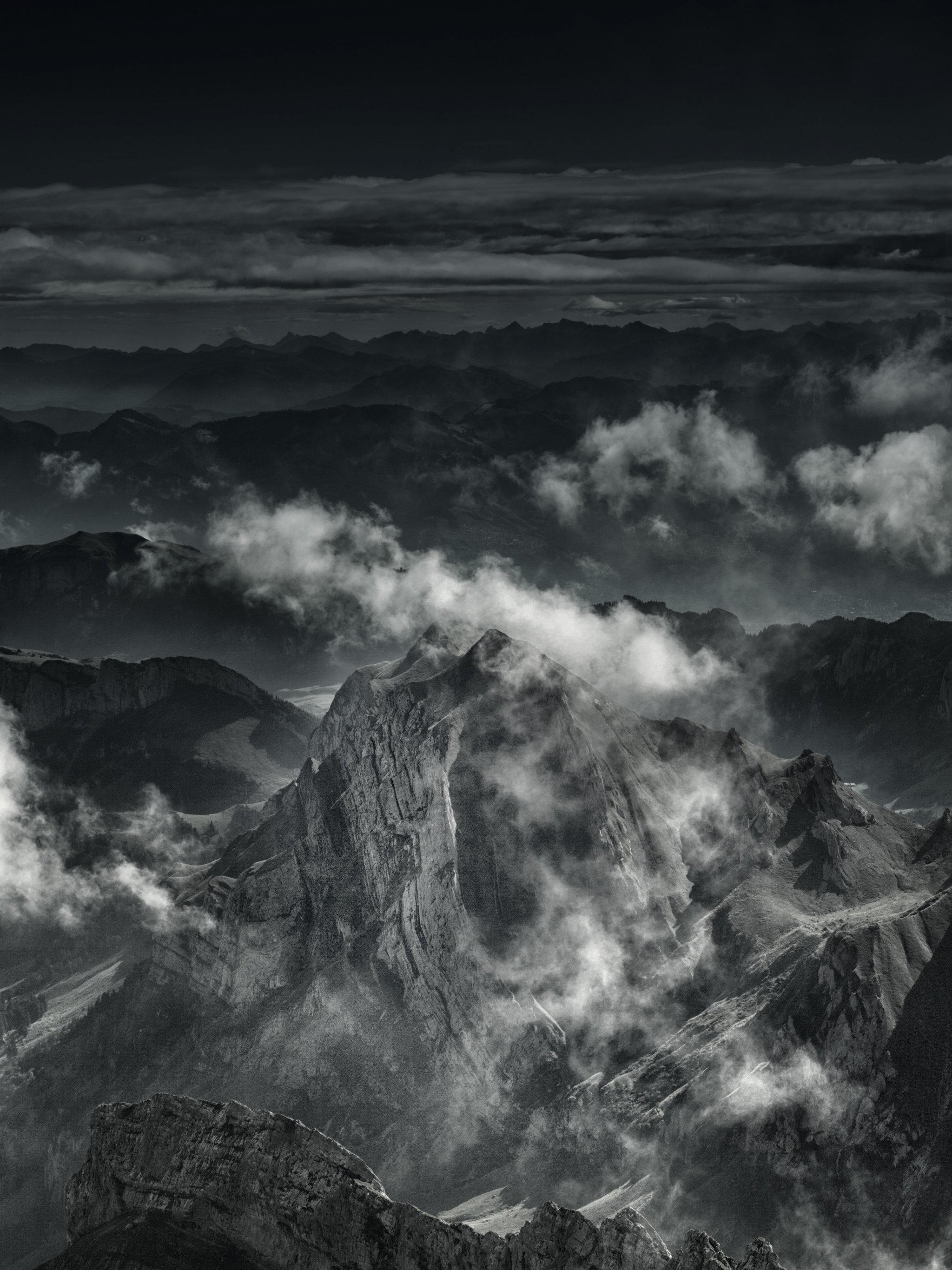 Wallpaper: mountain, black and white - 2048x2732