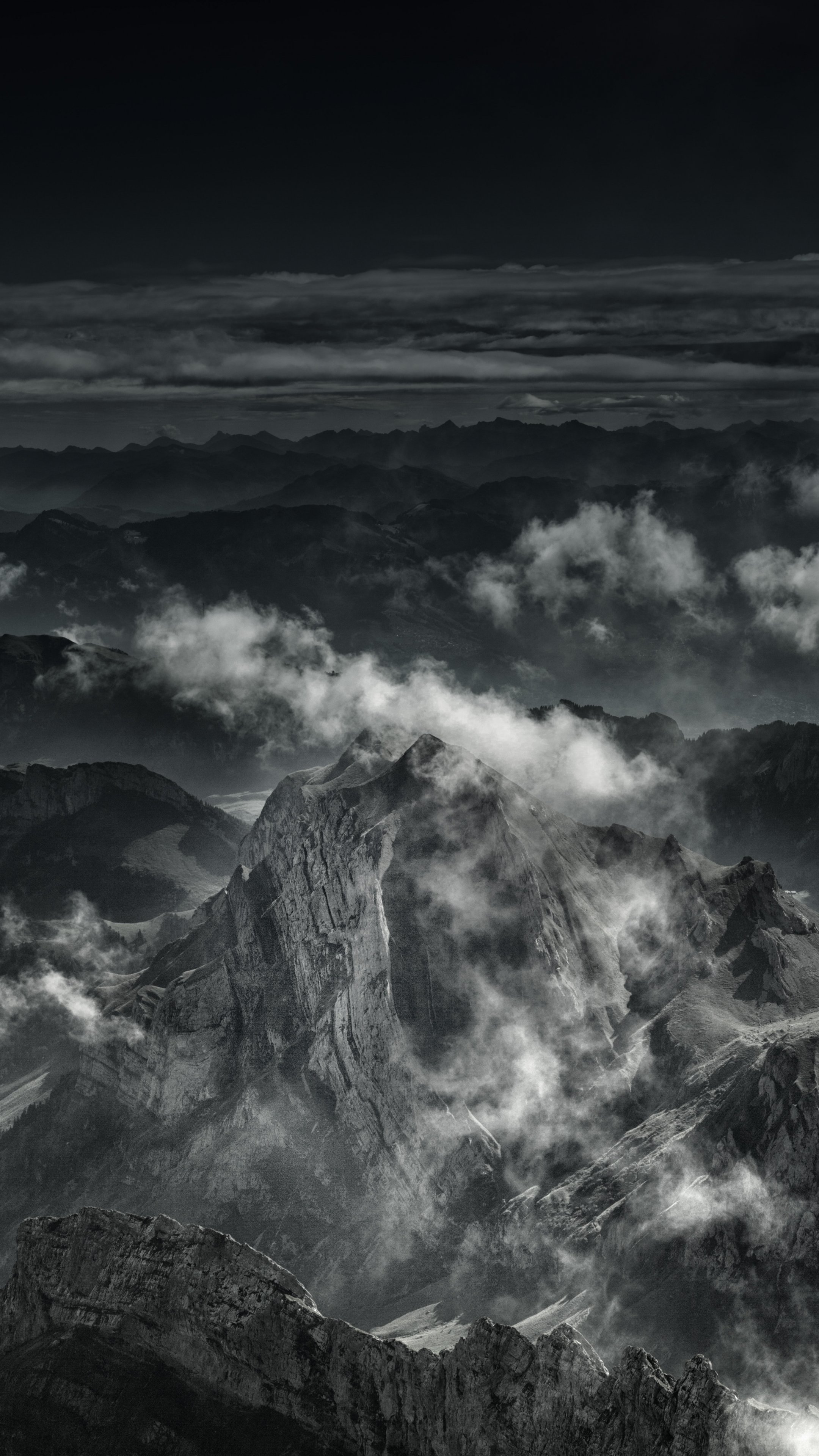 Wallpaper: mountain, black and white - 2160x3840