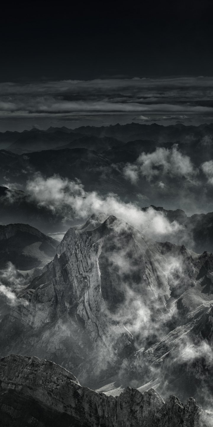 Wallpaper: mountain, black and white - 720x1440
