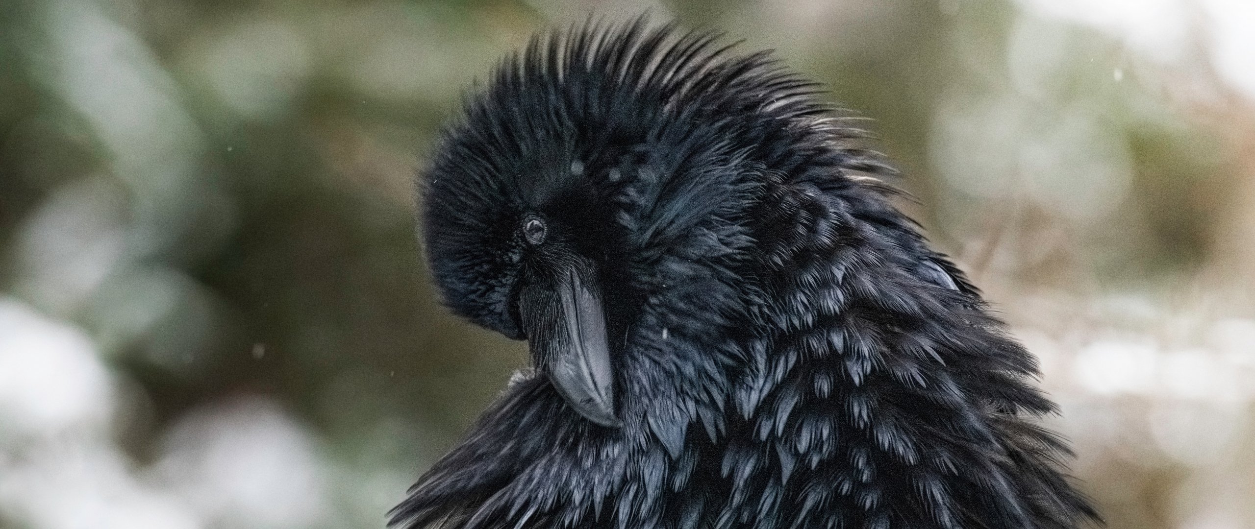 Wallpaper: black, bird, close up - 2560x1080