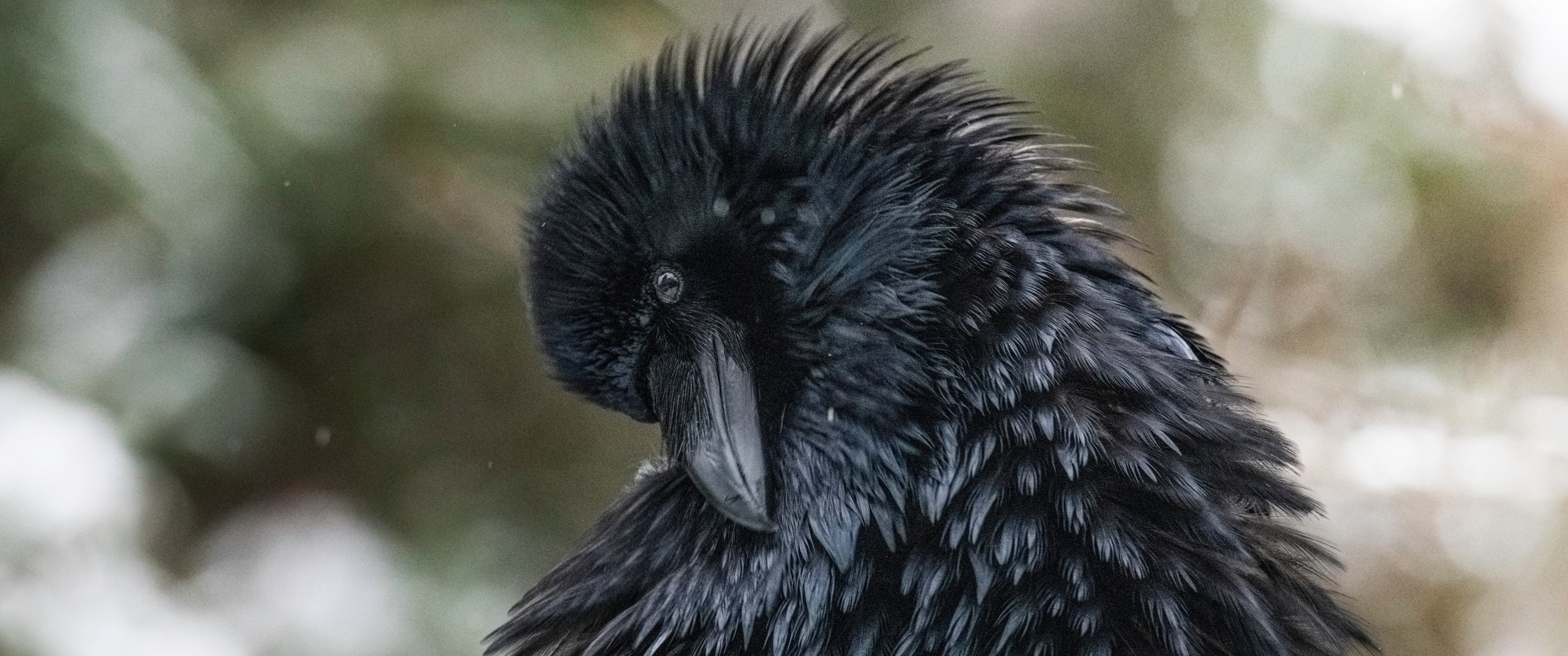Wallpaper: black, bird, close up - 3440x1440