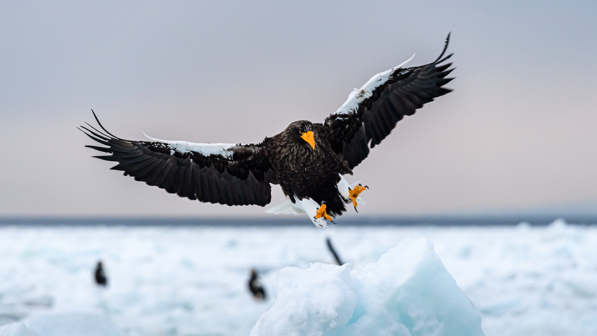 Wallpaper: Rausu, Japan, bird, hunting - 2048x1152