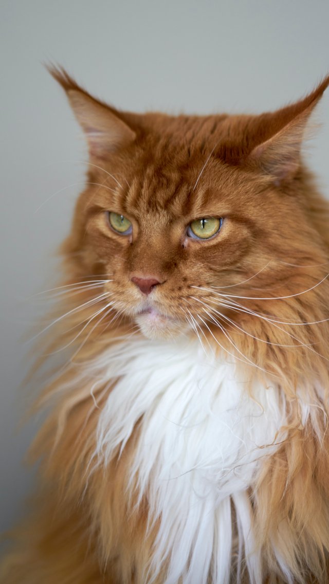 Wallpaper: cat eyes, redhead, maine coon - 640x1136