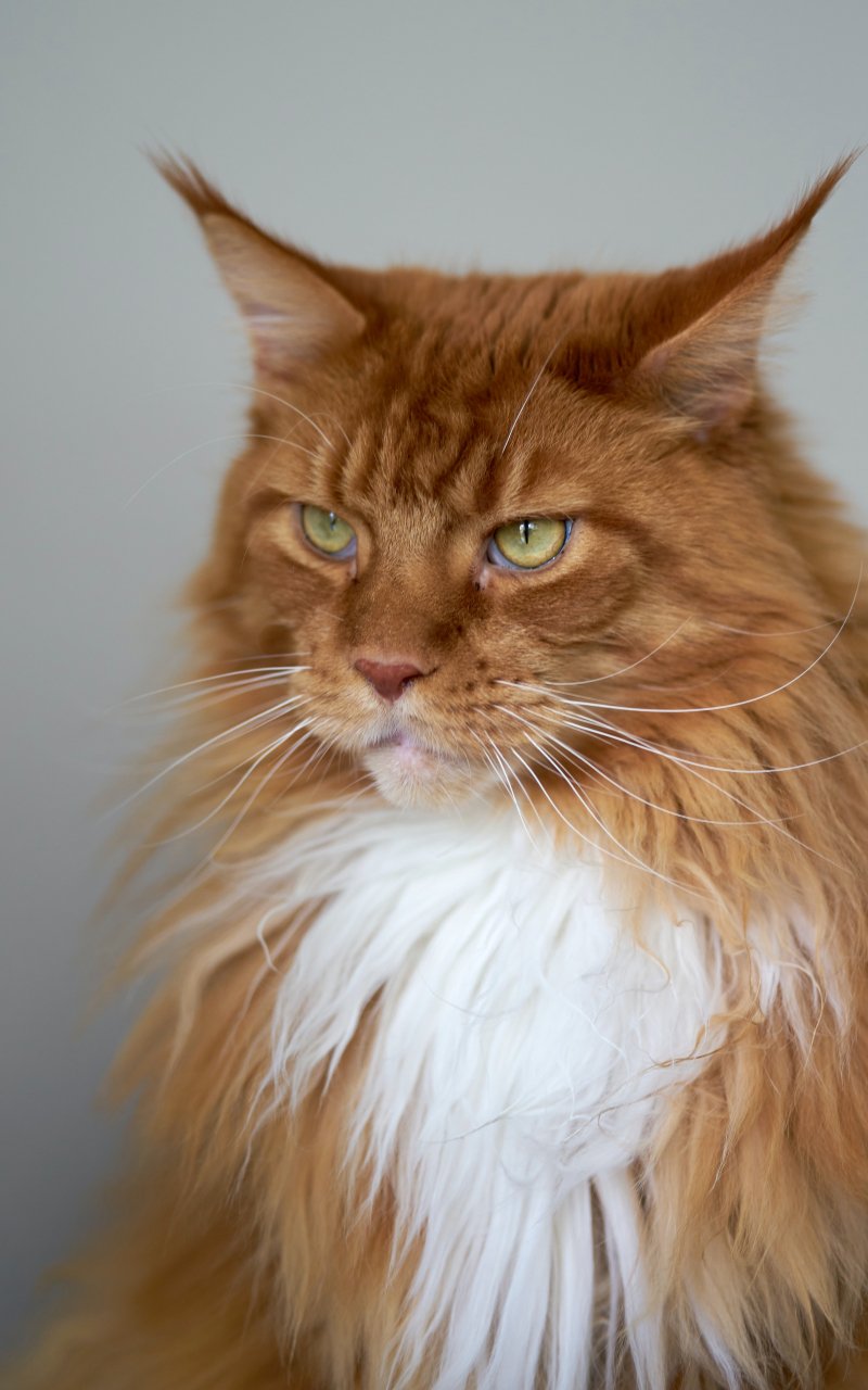 Wallpaper: cat eyes, redhead, maine coon - 800x1280