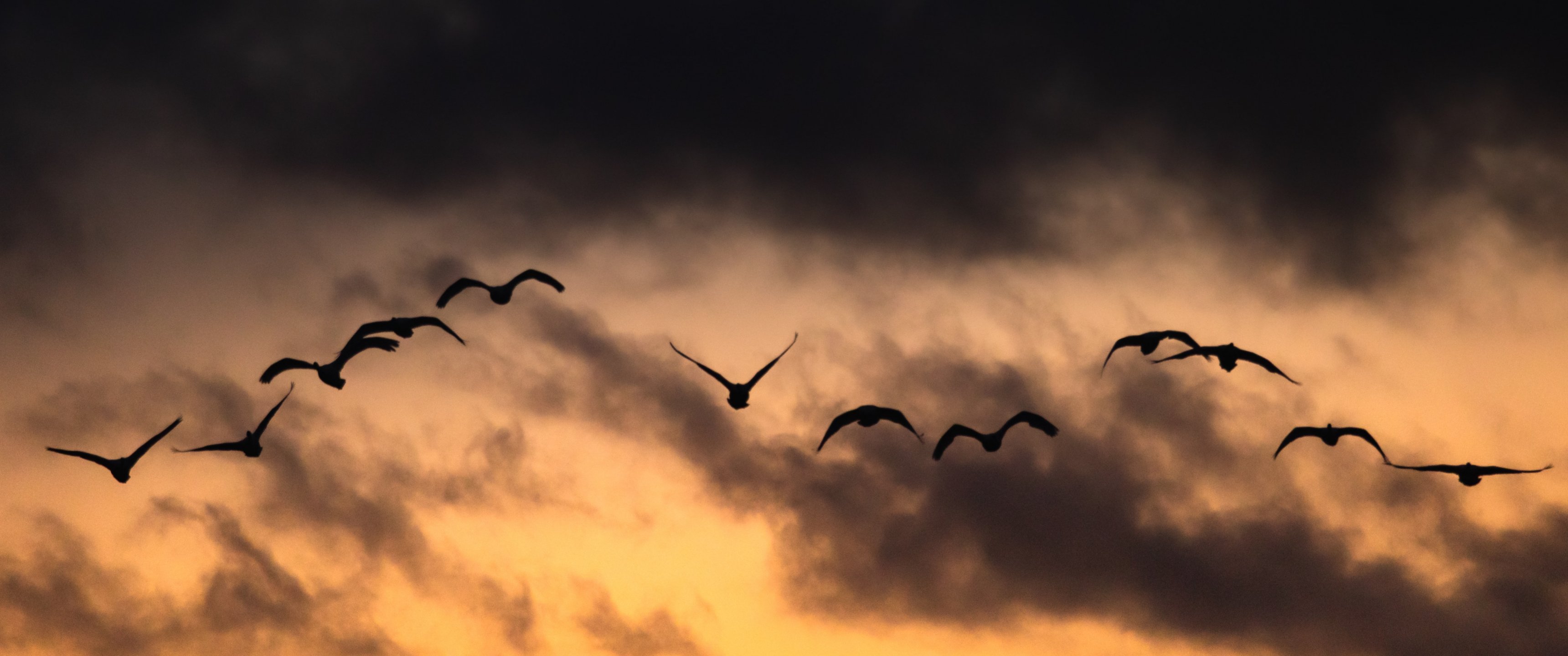 Wallpaper: Poland, flying birds, sunrise, sunset - 3440x1440