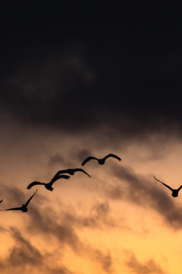 Wallpaper: Poland, flying birds, sunrise, sunset - 640x960