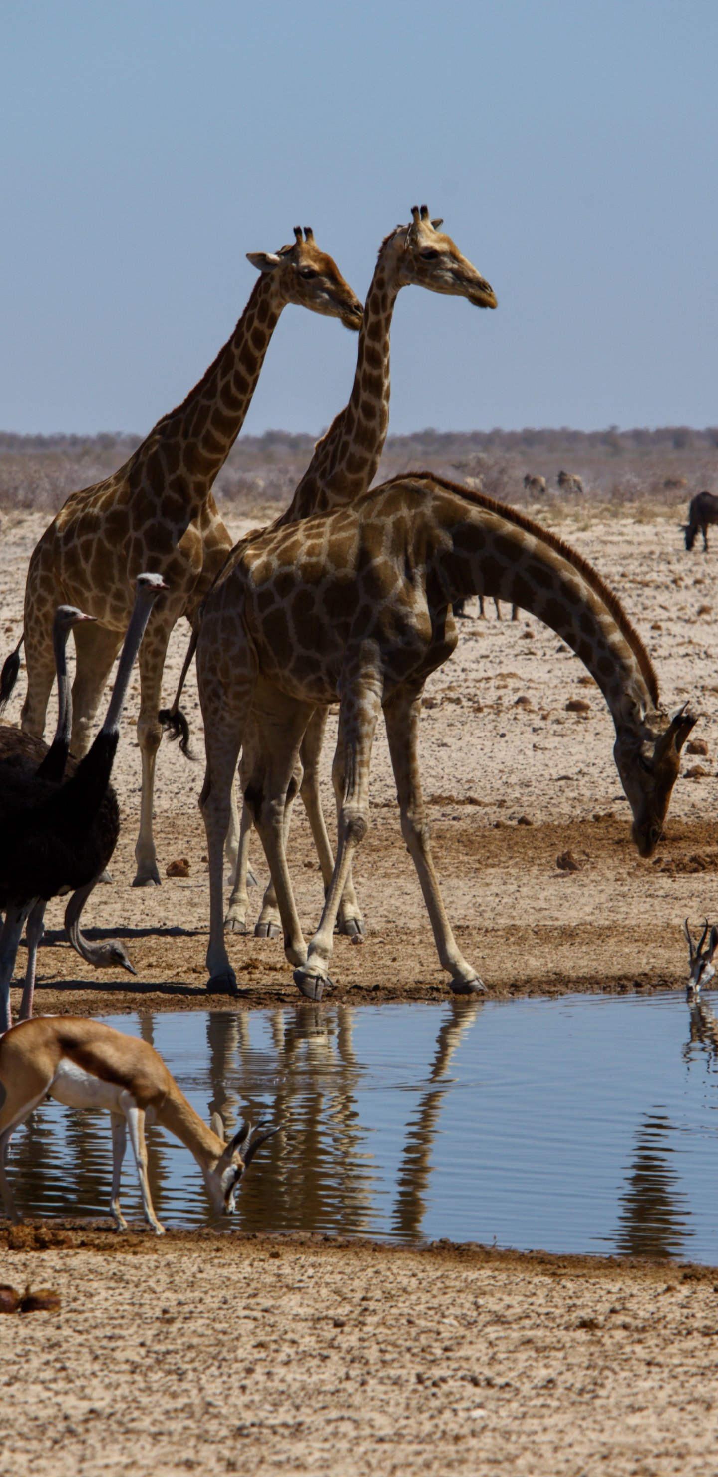 Wallpaper: Etosha, Namibia, wild nature, giraffes - 1440x2960