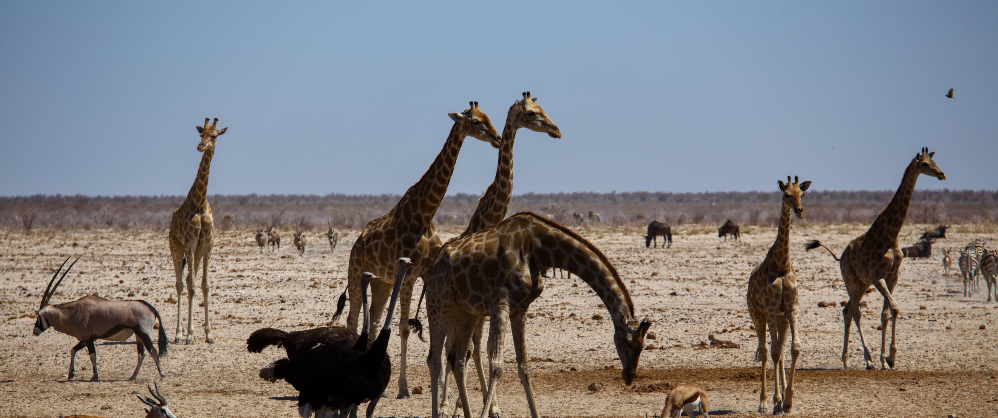 Wallpaper: Etosha, Namibia, wild nature, giraffes - 3440x1440