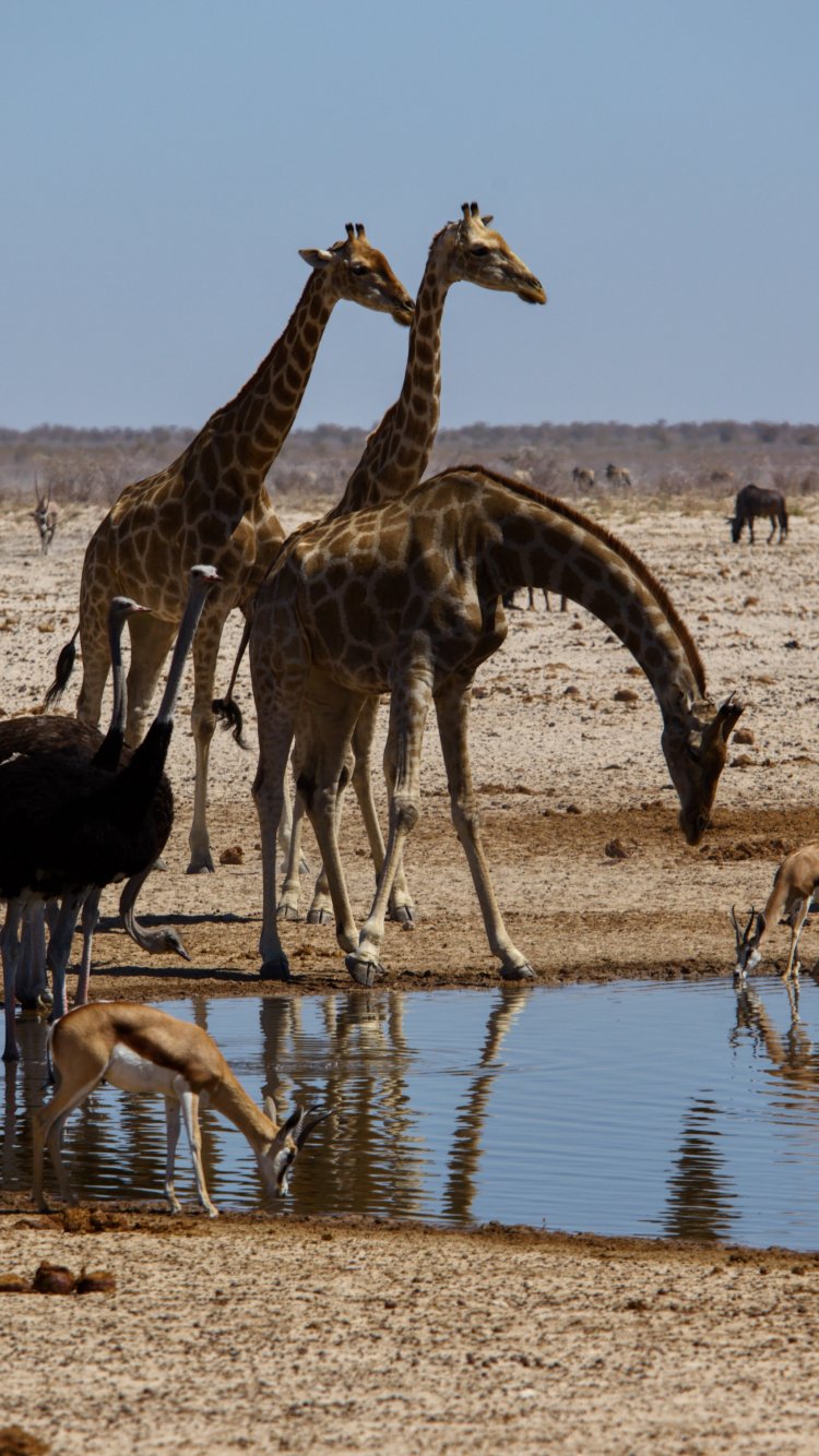 Wallpaper: Etosha, Namibia, wild nature, giraffes - 750x1334