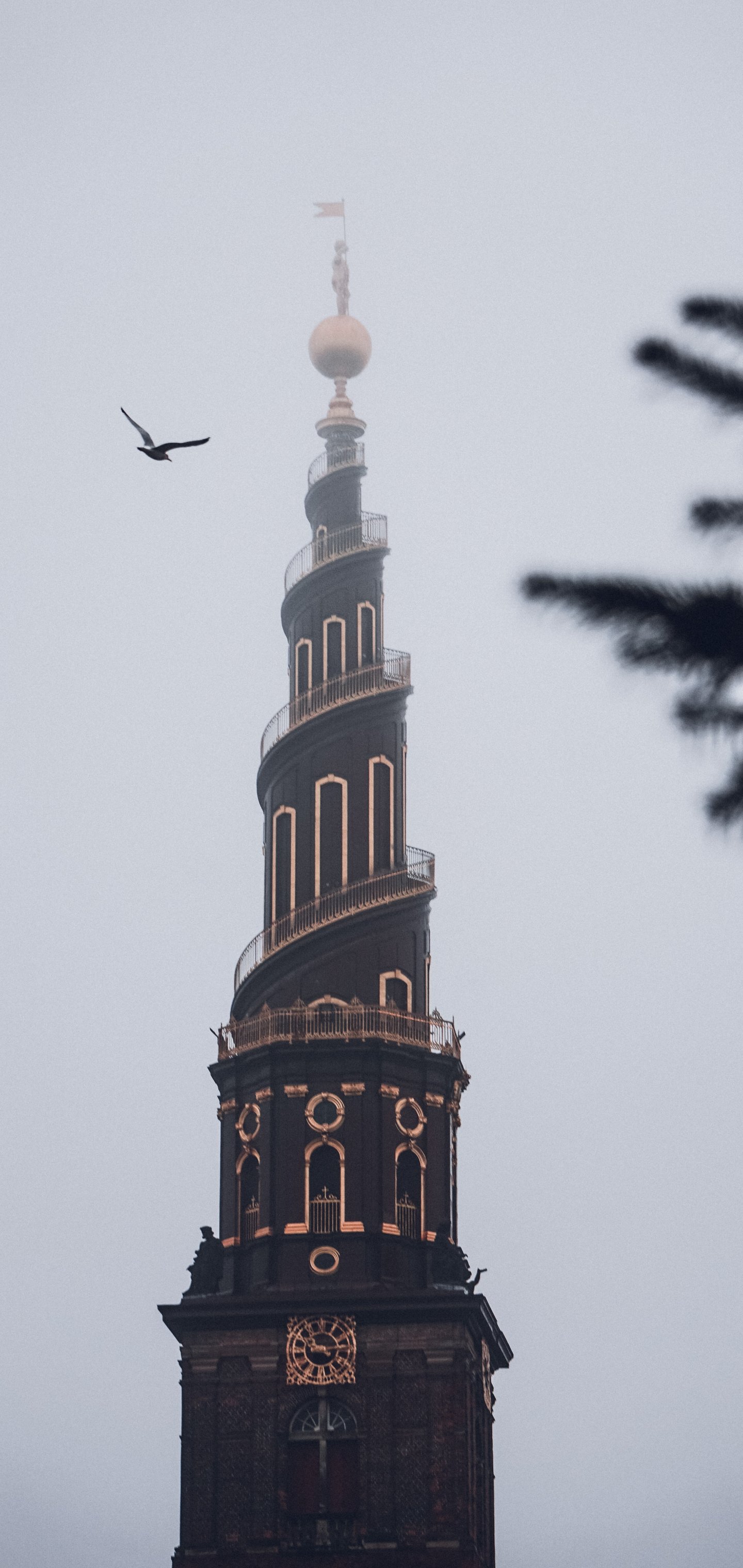 Wallpaper: Copenhagen, Copenhagen, Denmark, tower, fog - 1440x3040