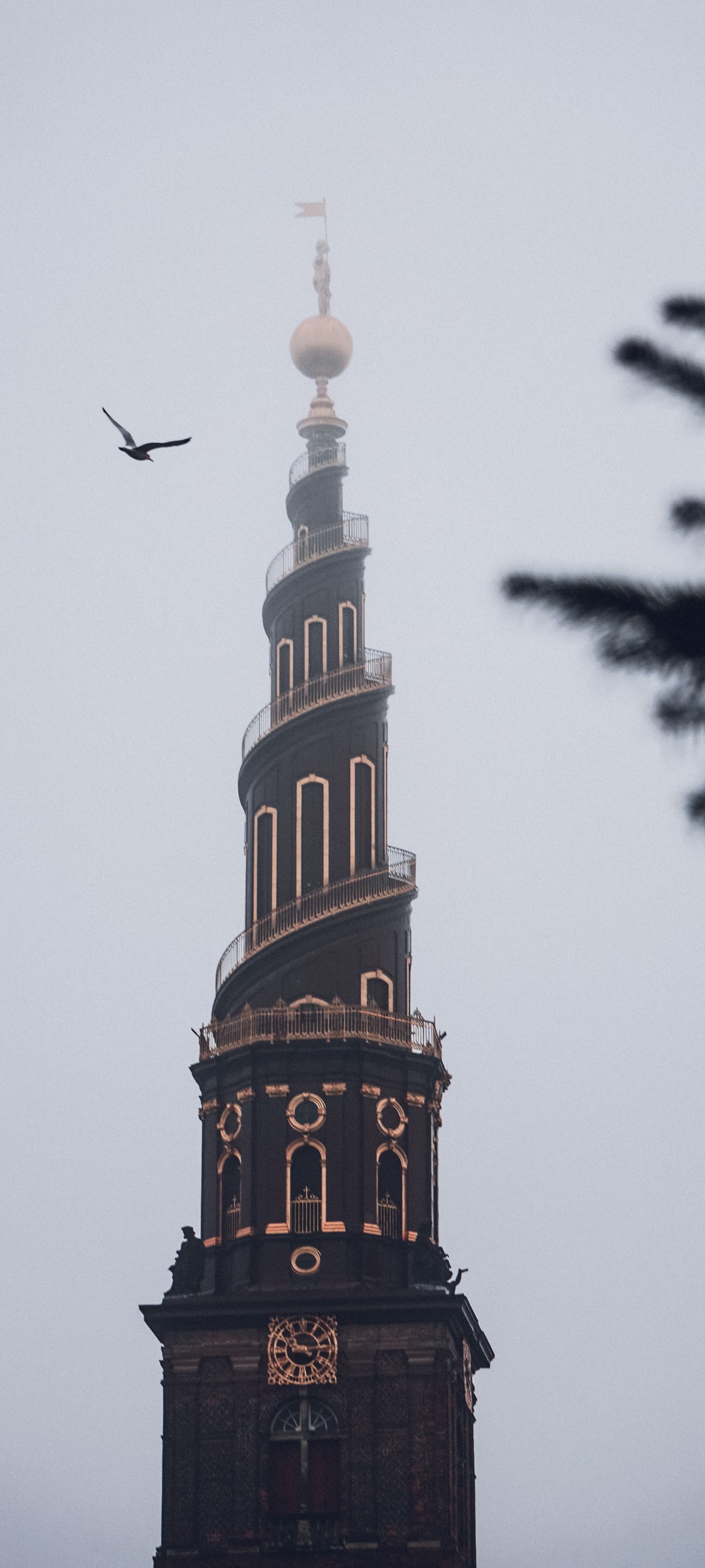 Wallpaper: Copenhagen, Copenhagen, Denmark, tower, fog - 1440x3200