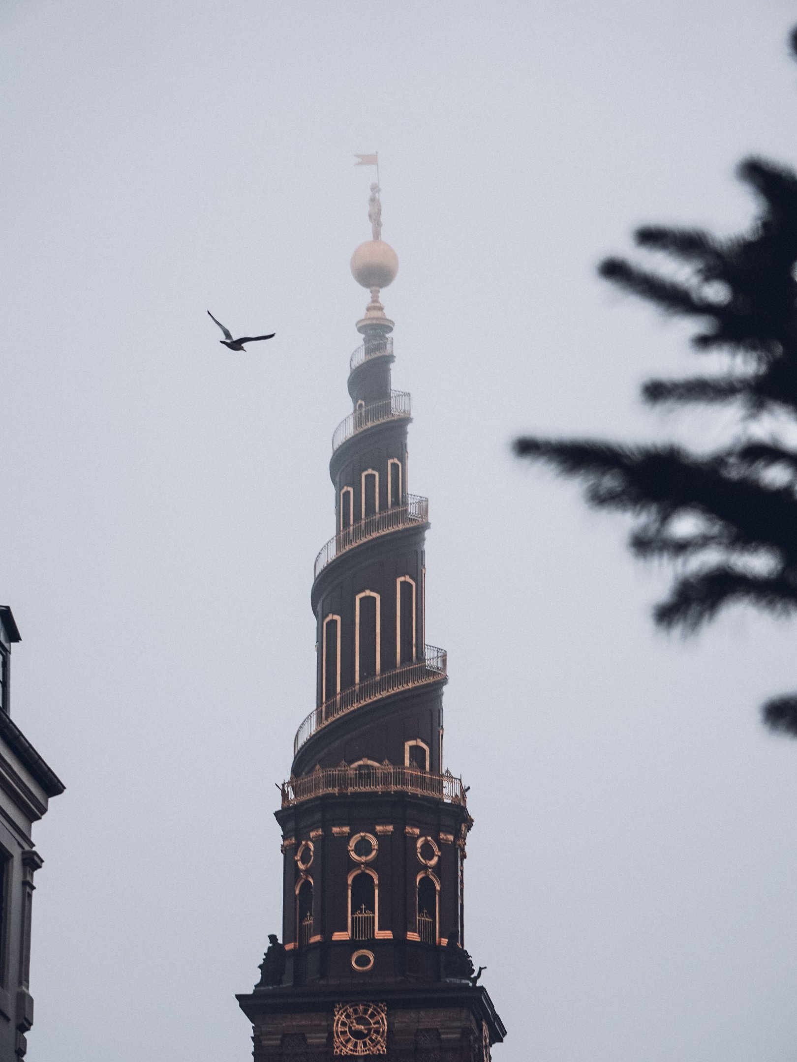 Wallpaper: Copenhagen, Copenhagen, Denmark, tower, fog - 1620x2160