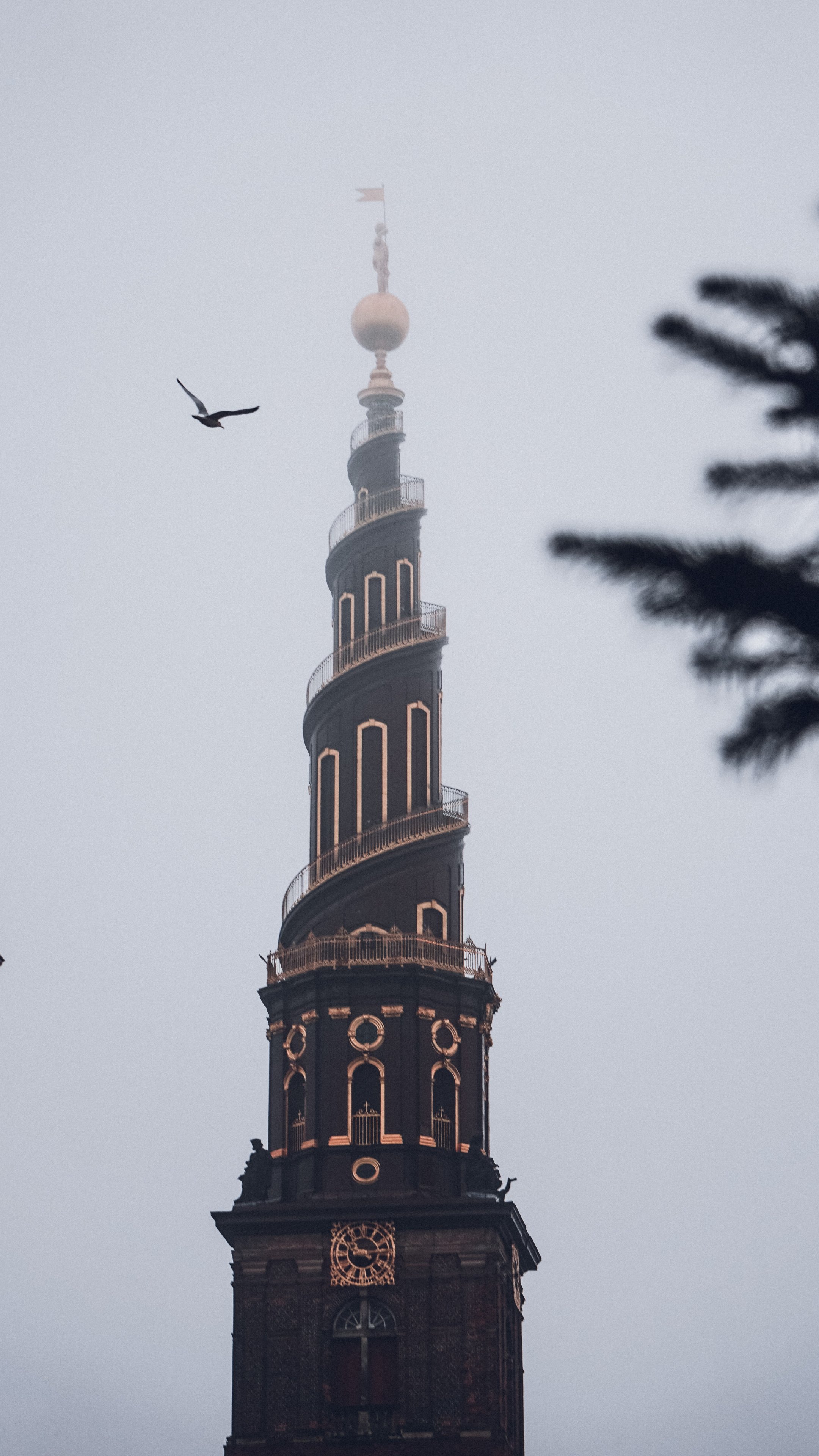 Wallpaper: Copenhagen, Copenhagen, Denmark, tower, fog - 2160x3840