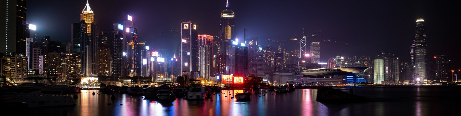 Wallpaper: Hong Kong, night city - 1590x400