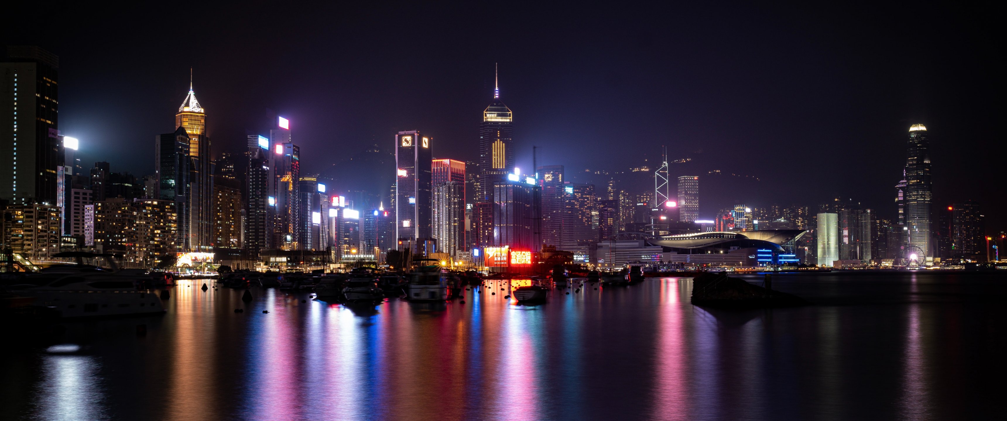 Wallpaper: Hong Kong, night city - 3440x1440