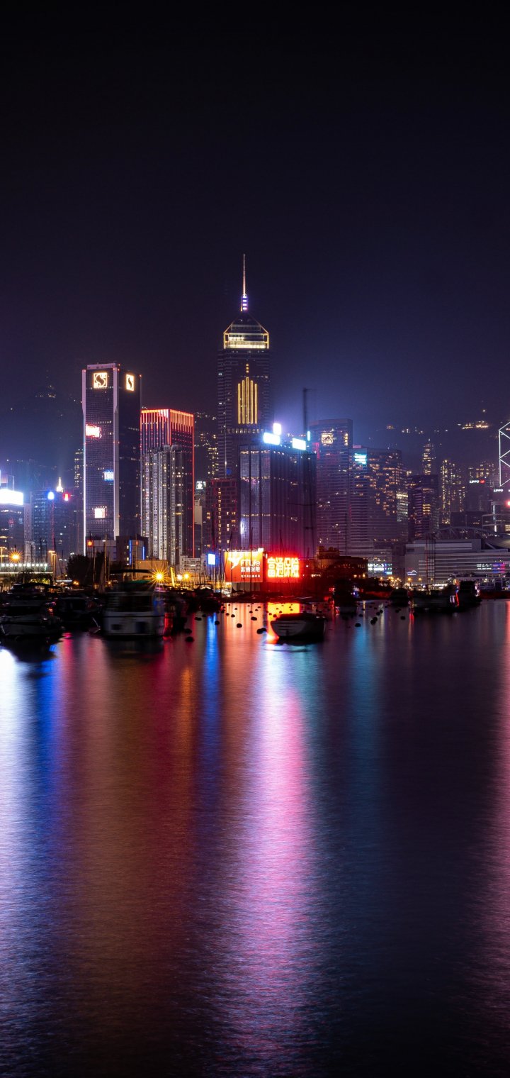 Wallpaper: Hong Kong, night city - 720x1520