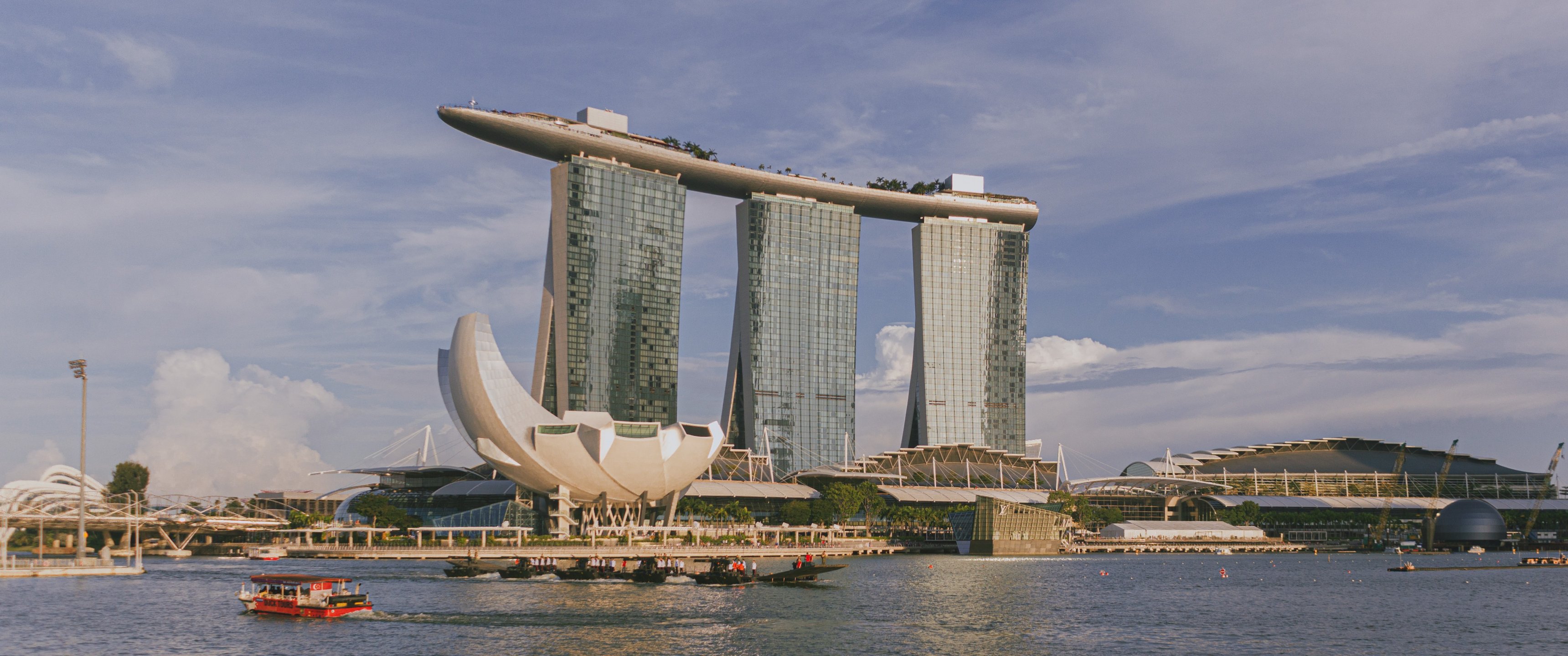 Wallpaper: Singapore, office building, sea - 3440x1440