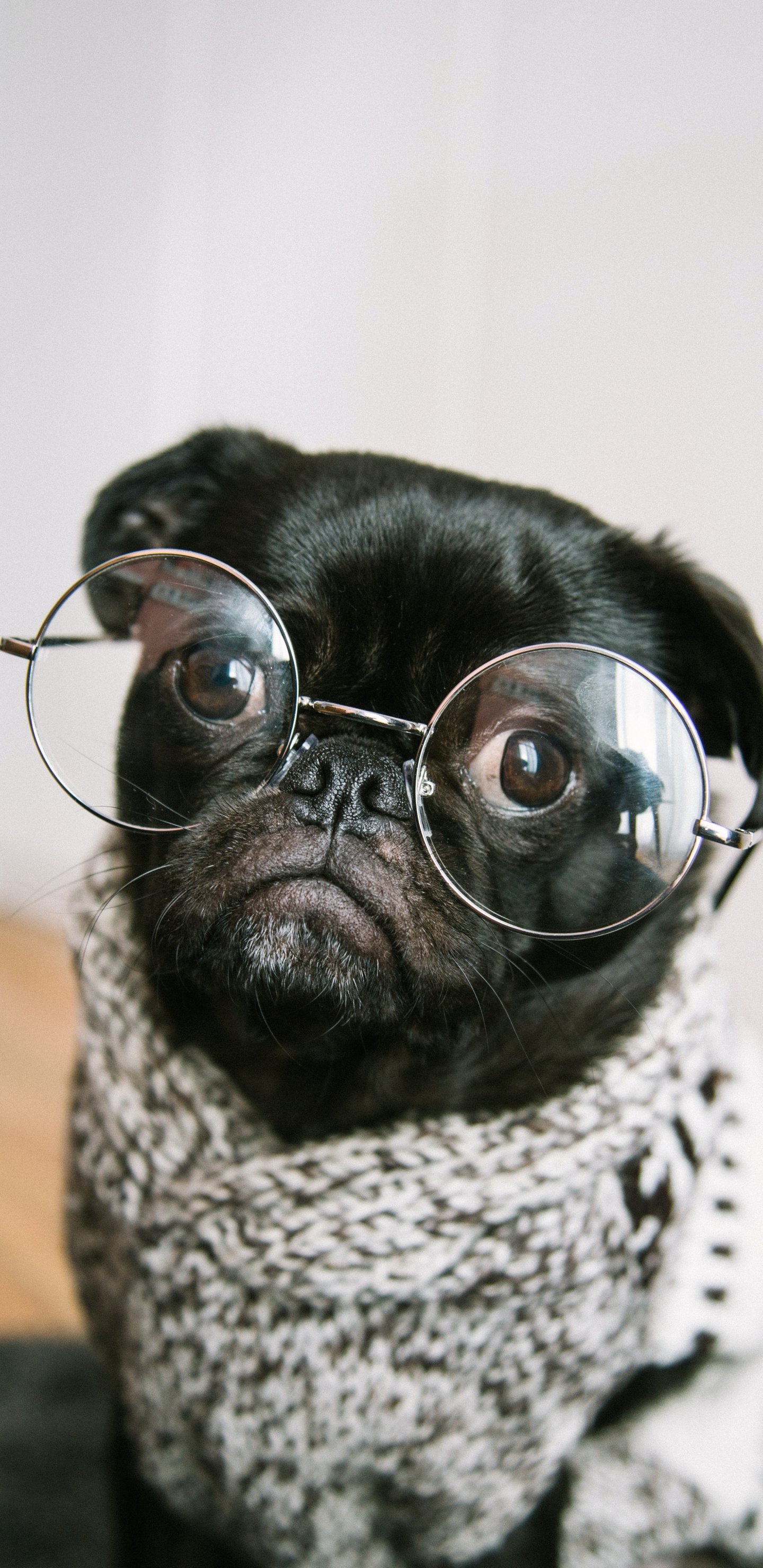 Wallpaper: pug, glasses, pet - 1440x2960