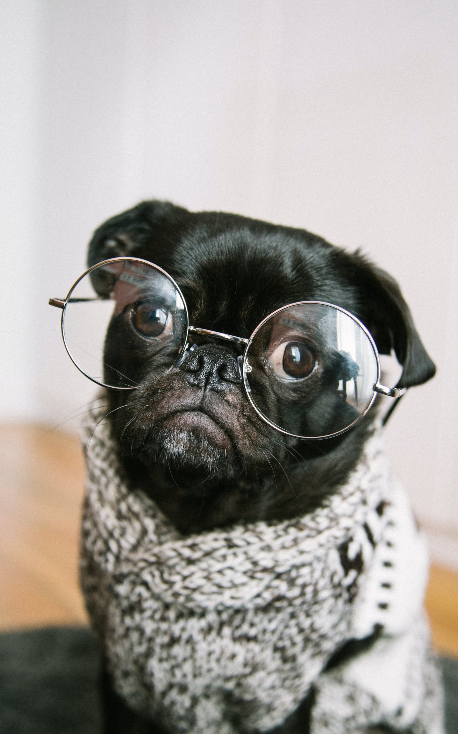 Wallpaper: pug, glasses, pet - 1600x2560