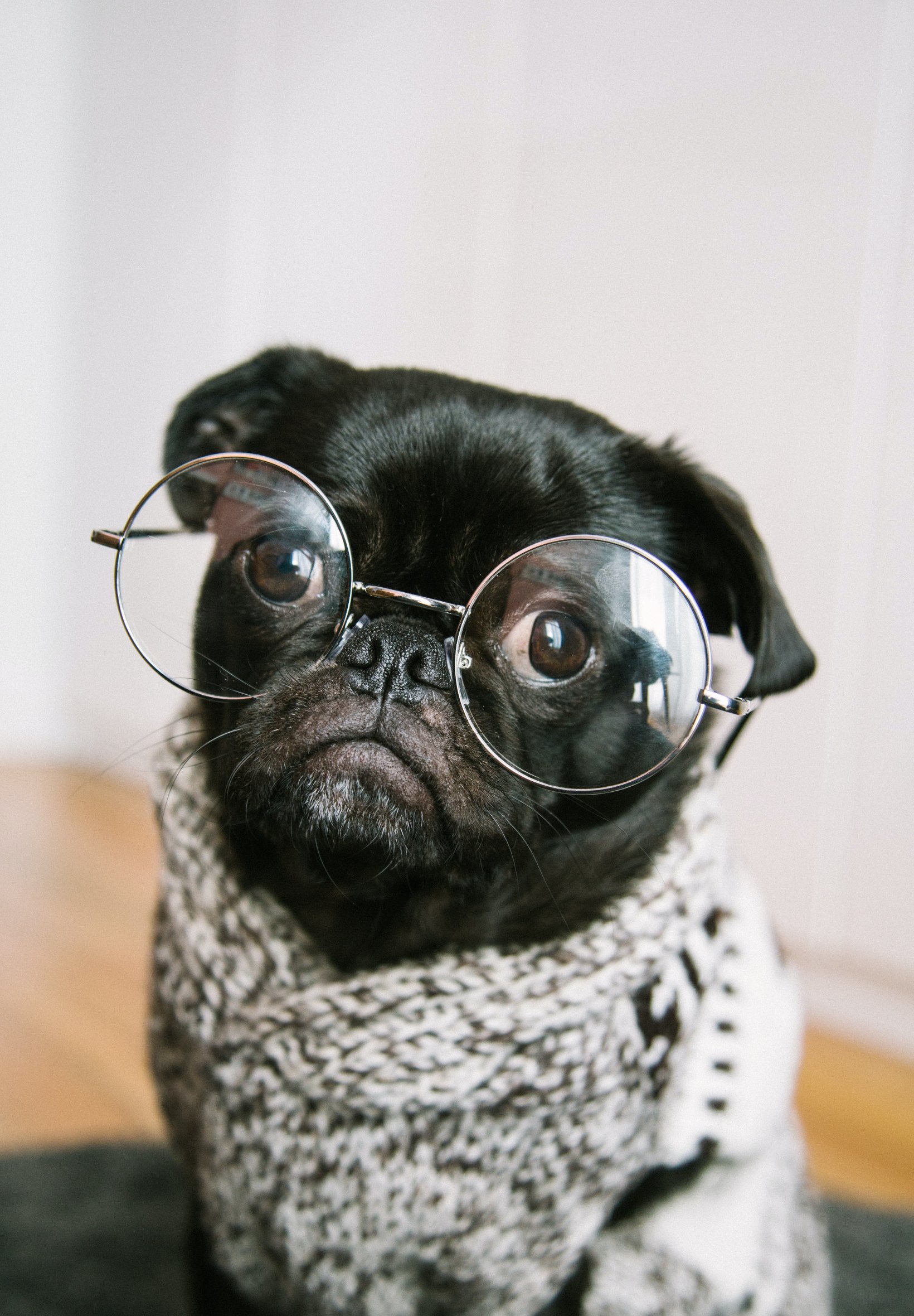 Wallpaper: pug, glasses, pet - 1640x2360