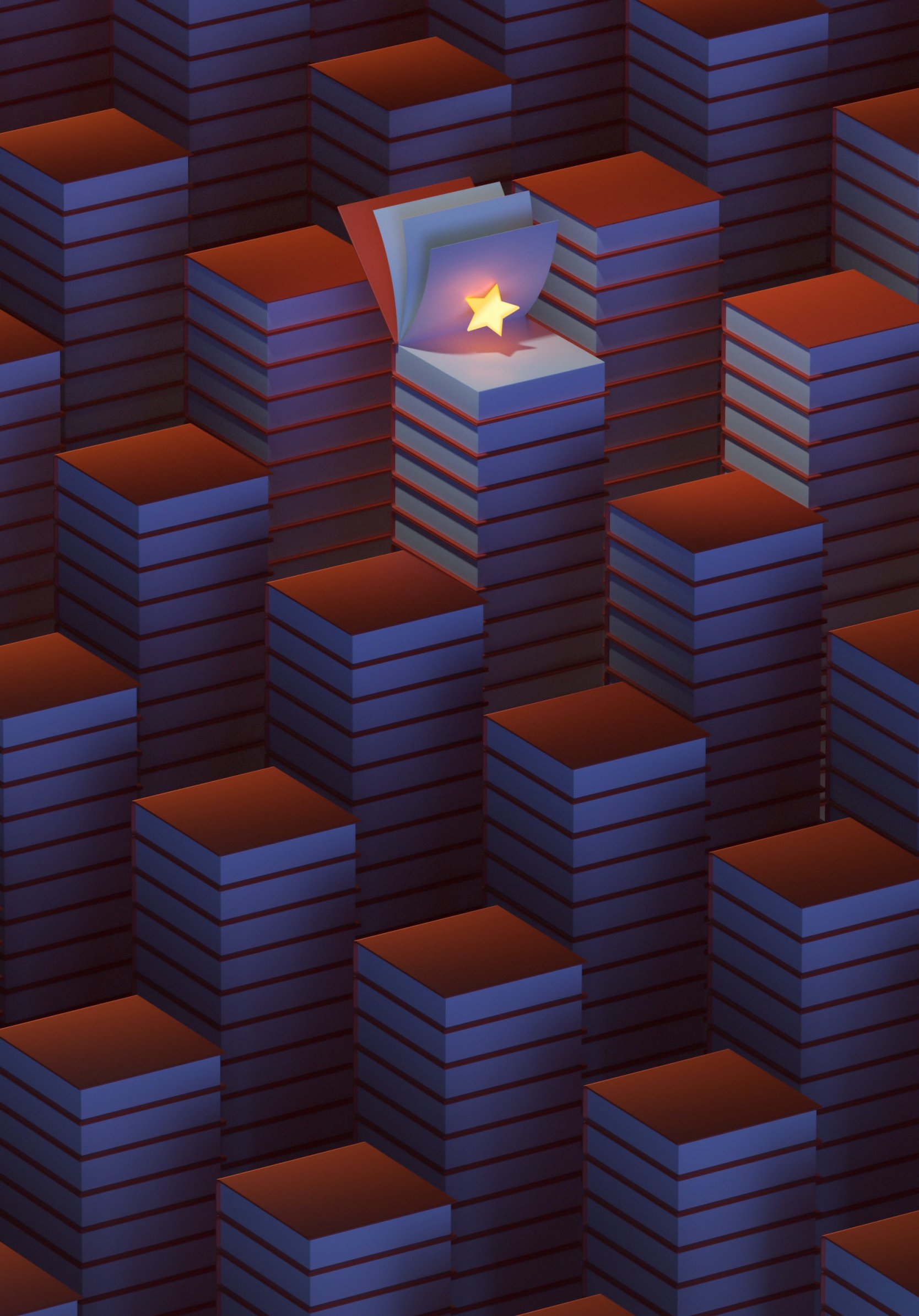 Wallpaper: 3D modeling, star, books - 1668x2388