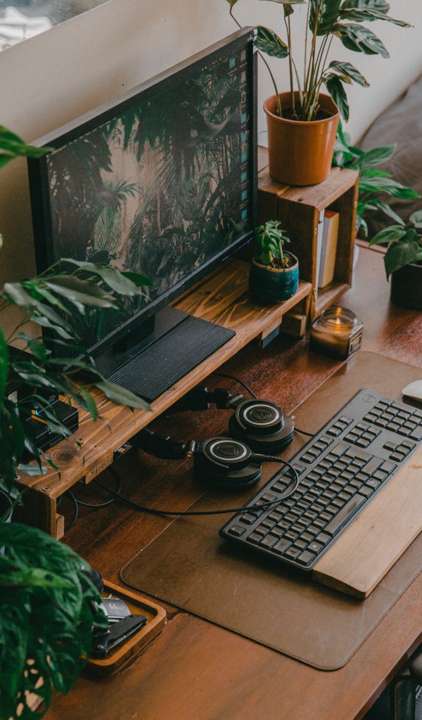 Wallpaper: computer, keyboard, plants - 600x1024