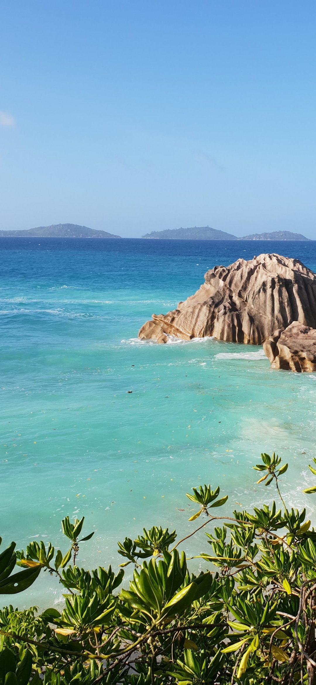 Wallpaper: La-Dig, Seychelles, sea, sun, palm trees - 1080x2340