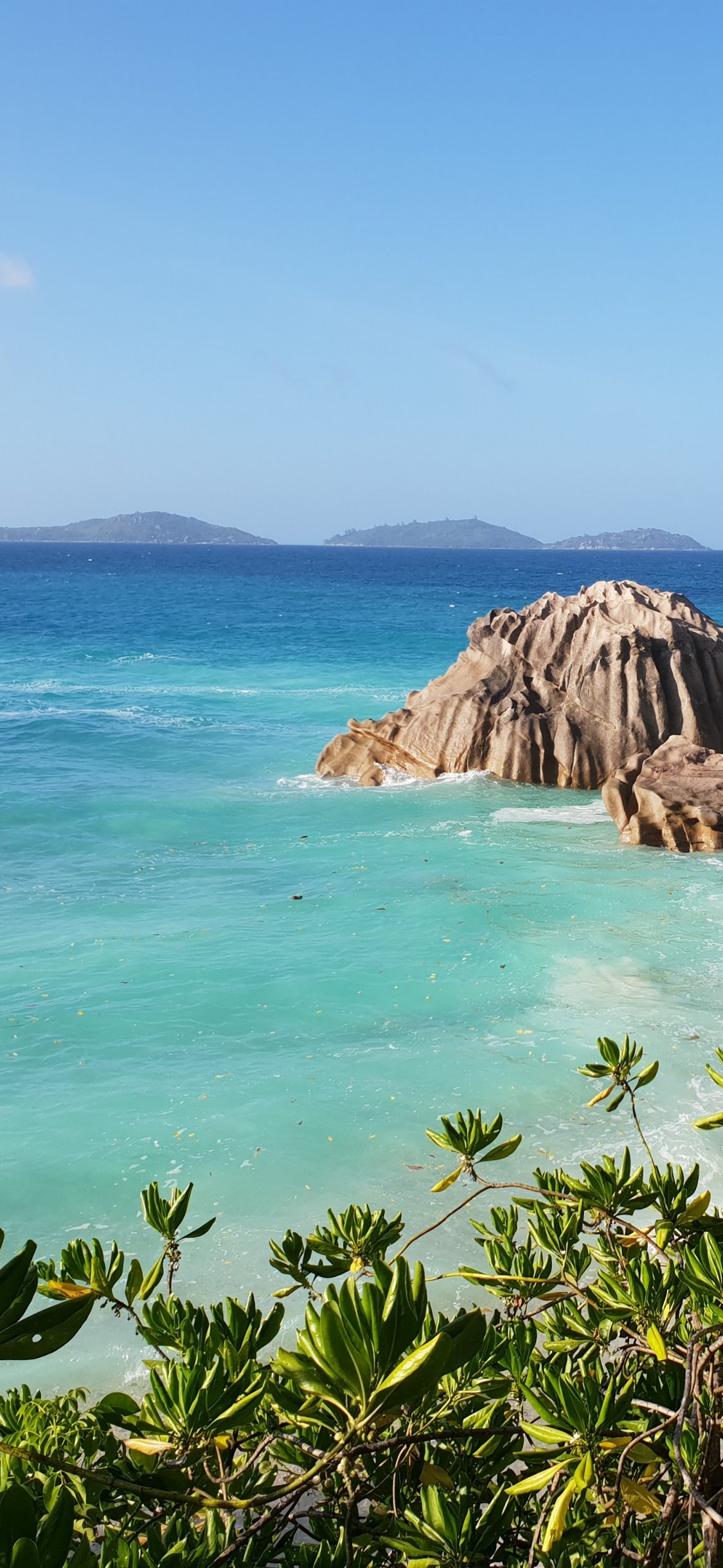 Wallpaper: La-Dig, Seychelles, sea, sun, palm trees - 1125x2436