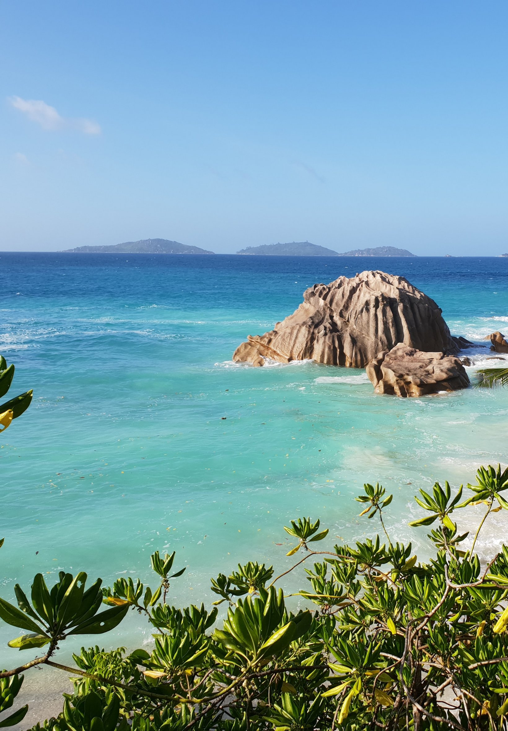 Wallpaper: La-Dig, Seychelles, sea, sun, palm trees - 1640x2360