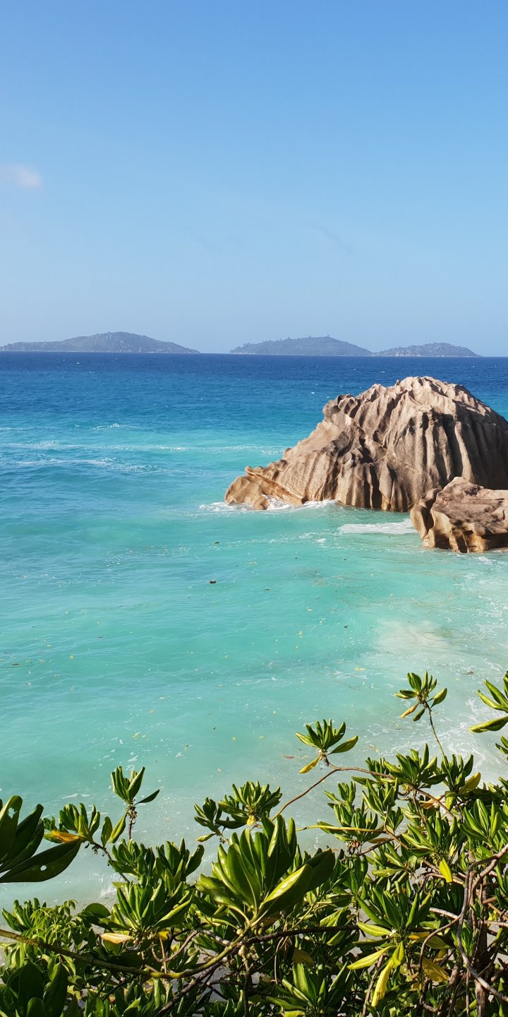 Wallpaper: La-Dig, Seychelles, sea, sun, palm trees - 720x1440