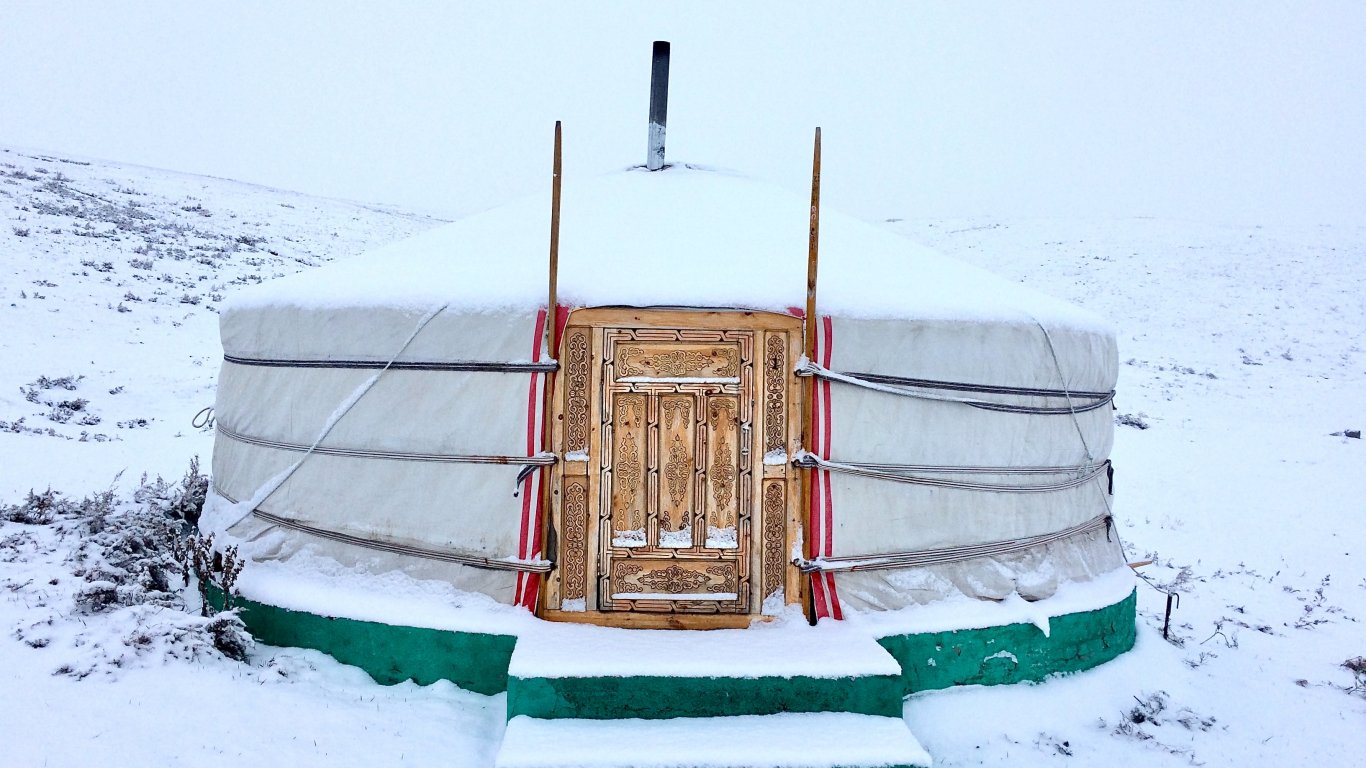 Wallpaper: Mongolia, tent, winter - 1366x768